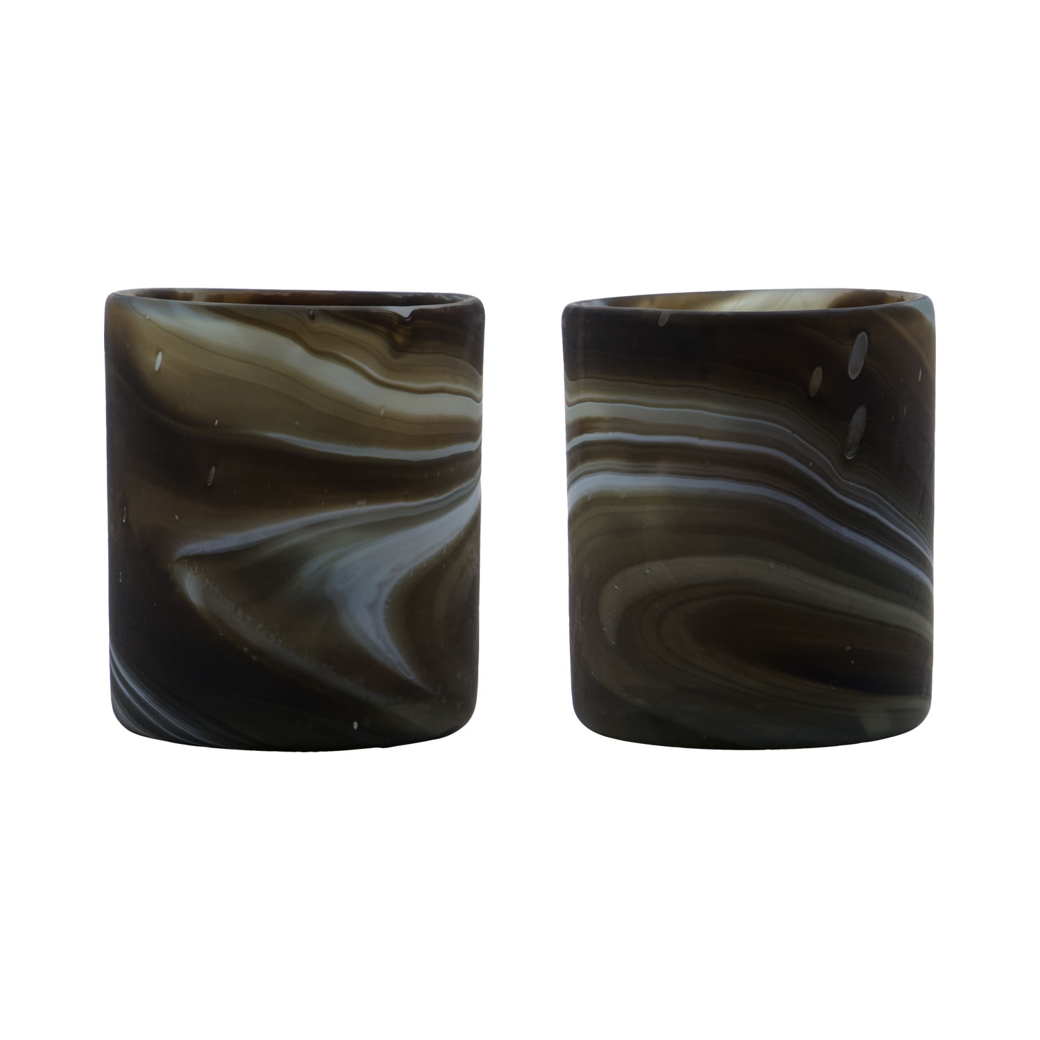 Disse fyrfadsstager fra House Doctor er lavet af mundblæst glas, hvilket giver hver stage sin unikke karakter. Det marmorerede mønster i brune og hvide nuancer skaber en visuel dybde, og når lyset skinner igennem det gennemsigtige glas, opstår der en varm atmosfære i rummet.