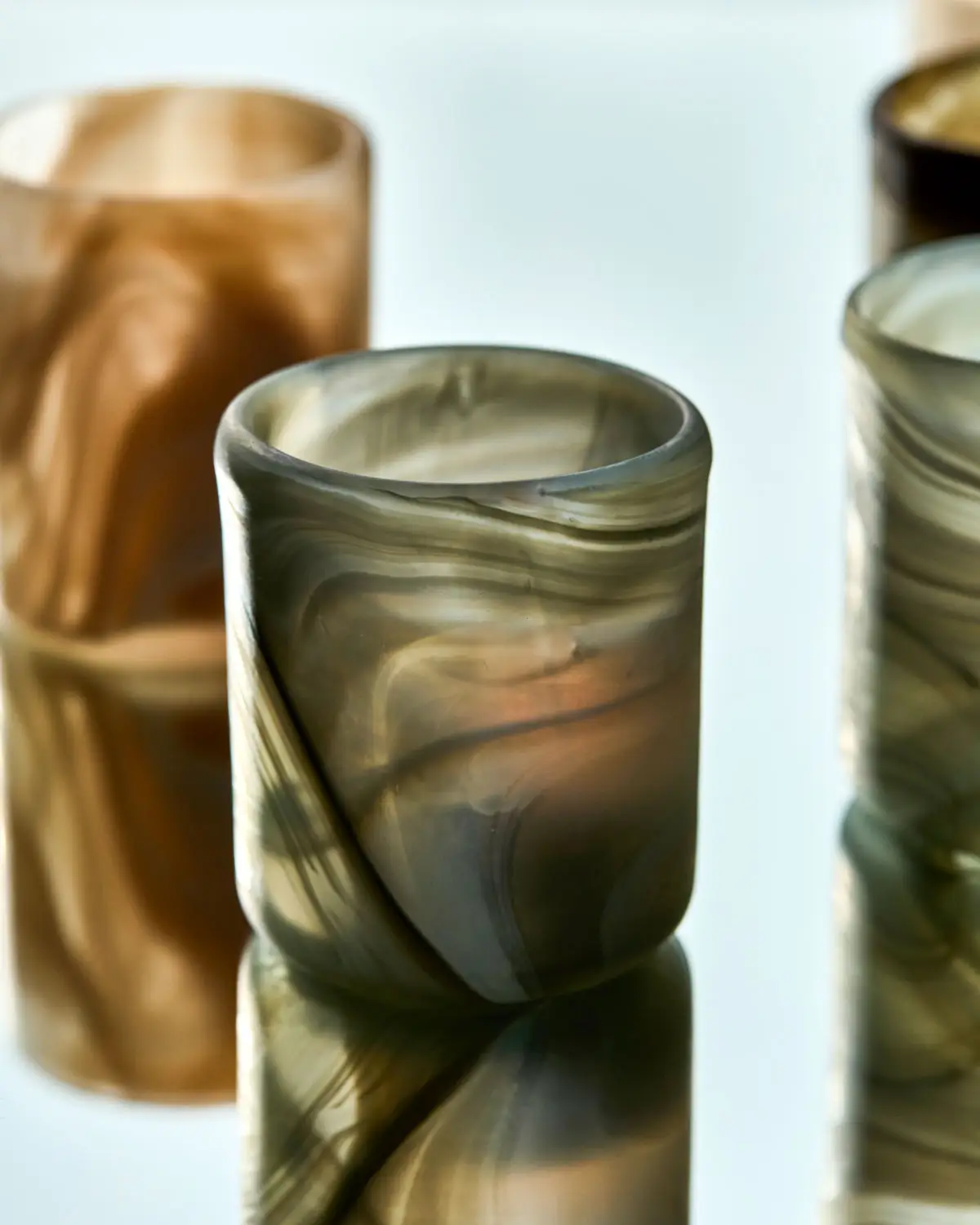 Disse fyrfadsstager fra House Doctor er lavet af 100 % mundblæst glas med en marmoreret finish i grå og grønne nuancer. Hver stage er særpræget takket være den håndlavede fremstillingsproces, der sikrer, at ingen to stager er ens.