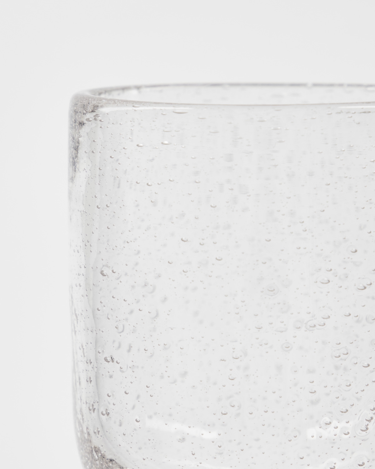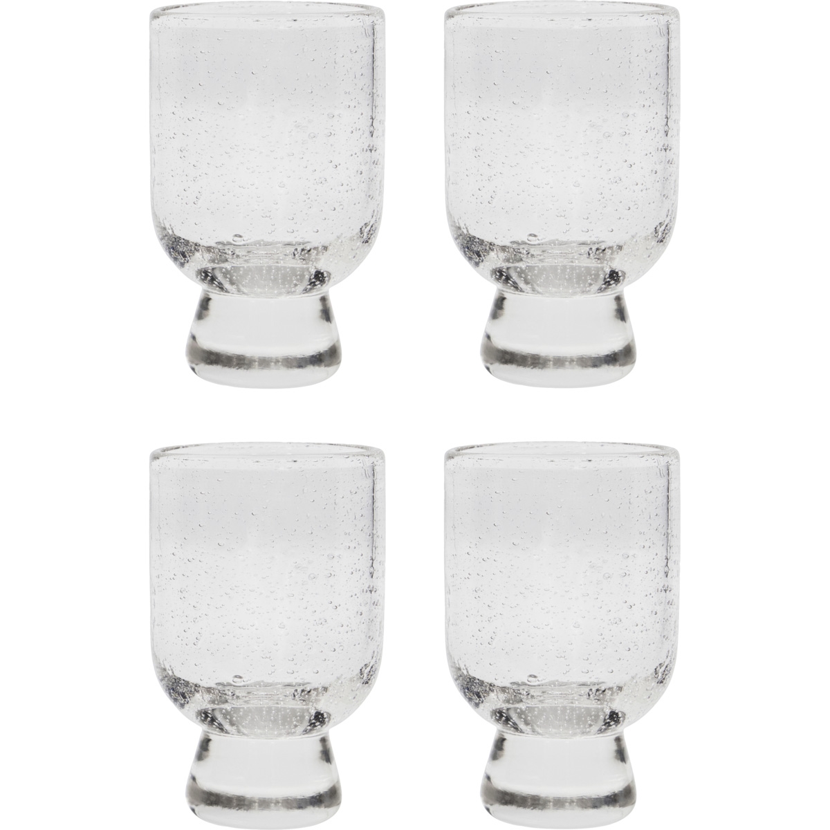 Et sæt med fire mundblæste glas i klart bobleglas giver dit bord et moderne og legende udtryk. Hvert glas er unikt med små bobler i glasset og masser af visuel dybde, mens den fyldige fod giver stabilitet og personlig stil. Perfekt til både hverdag og fest – uanset om du byder på vand, cocktails eller små serveringer. Præsenter glassene sammen for en harmonisk borddækning, eller sæt sammen dem med farvede glas for et spændende twist.- Sæt med fire unikke glas.- Mundblæst bobleglas.- Tykkere fod for stabilitet.- Moderne og dekorativt design.Lad bordet skinne, og skab karakter med glas, der sætter prikken over i’et.