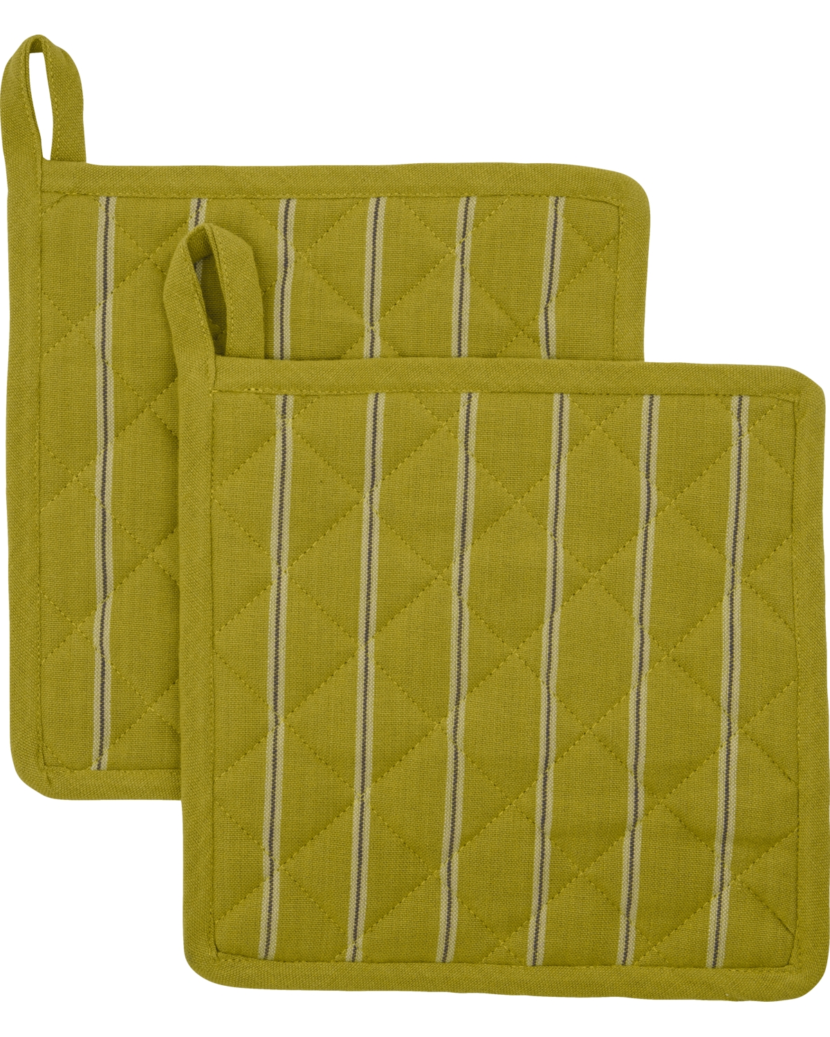 Giv dit køkken tidløs stil med dette sæt med to sennepsgrydelapper. Den slående sennepsbundfarve suppleres smukt af smalle striber i råhvid og sort, der tilbyder et klassisk og alsidigt design. Disse grydelapper er lavet af 100 % bomuld og giver en tyk, quiltet tekstur for overlegen varmebeskyttelse. Perfekt til hverdagsbrug, de kombinerer praktisk funktion med et elegant udseende, der fremhæver dit køkkens æstetik. - Sæt med 2 dele - Lavet af 100 % bomuld - Tykt quilt for beskyttelse - Tidløst stribedesign Tilføj et stilfuldt touch til dine køkkenting.