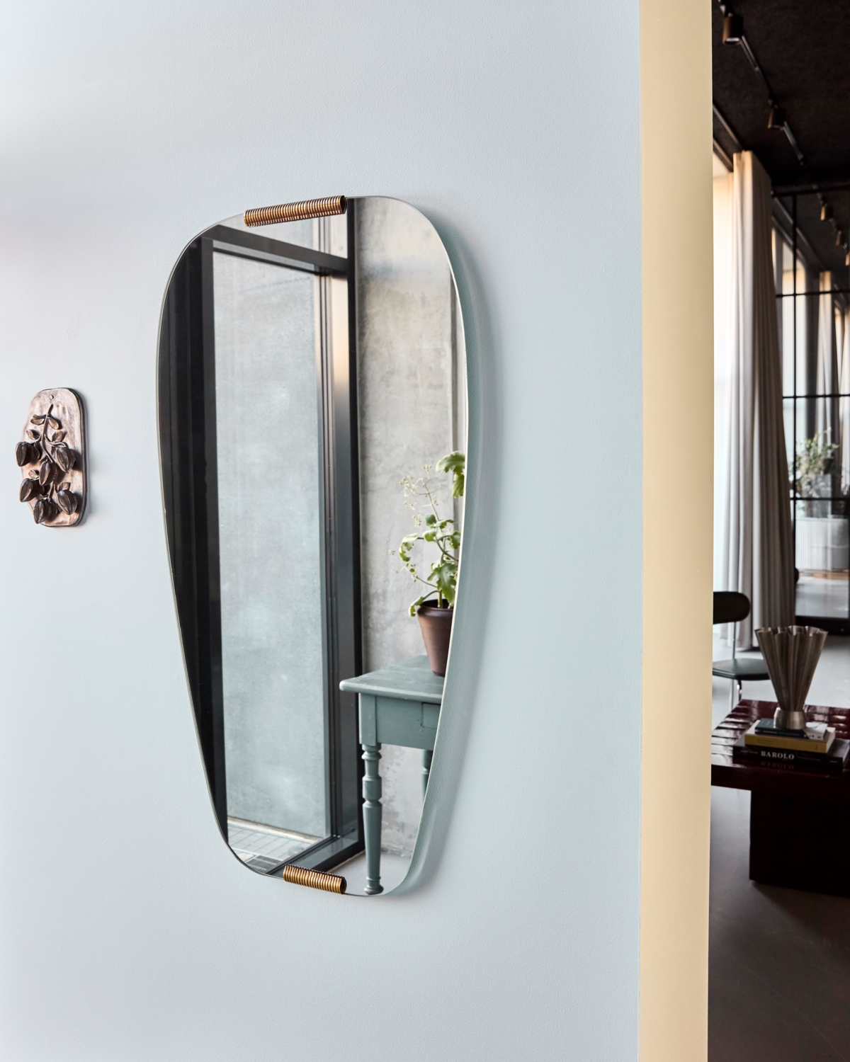 Et ovalt spejl med elegante gyldne clips giver dit hjem et strejf af art deco og et feminint udtryk.Unikke detaljer i glas, jern og messing skaber et stilfuldt blikfang, uanset om du hænger det op i entréen eller soveværelset. Den bløde form skaber balance i indretningen og løfter stemningen, mens de gyldne clips giver et eksklusivt præg.- Ovalt design med gyldne clips.- Fremhæver feminine art deco-referencer.- Glas, jern og messing i høj kvalitet.- Velegnet til entré eller soveværelse.Sæt et personligt præg på dit hjem med et dekorativt spejl, der gør en forskel.