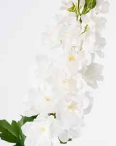 En høj, kunstig ridderspore med elegante hvide blomsterblade og et naturtro udtryk.- Naturtro blomst.- Høj og elegant stilk.- Holdbart design.