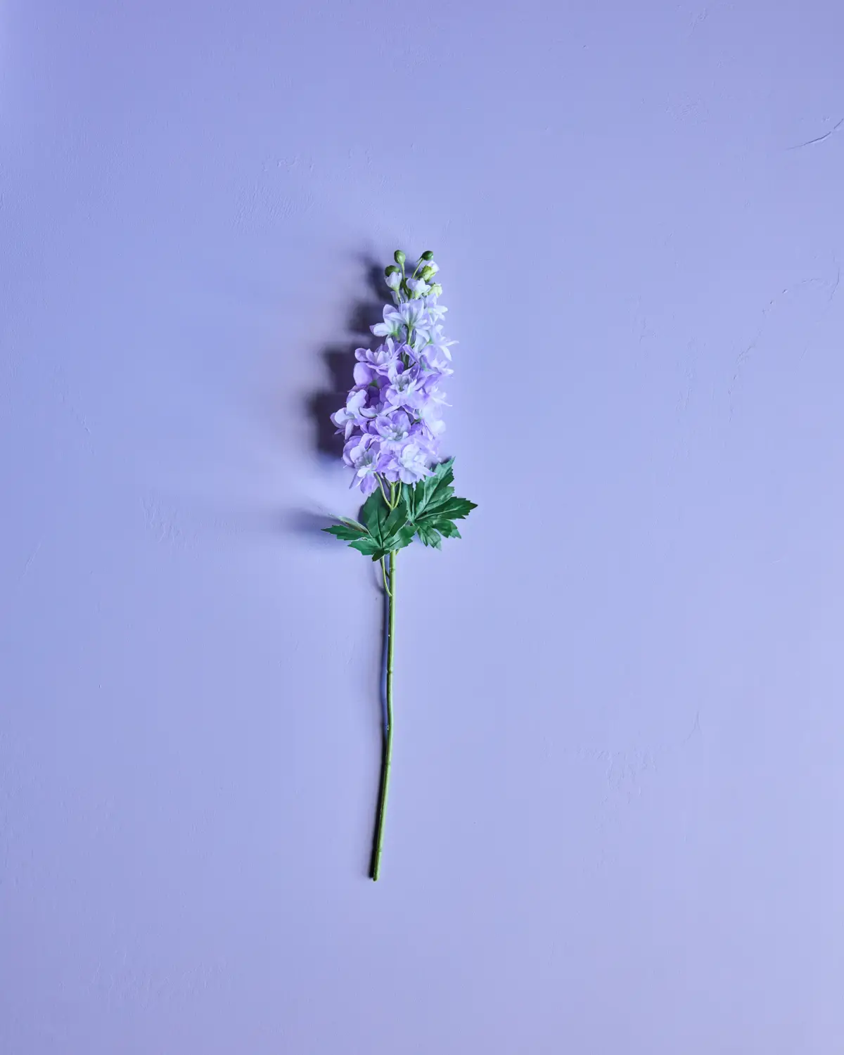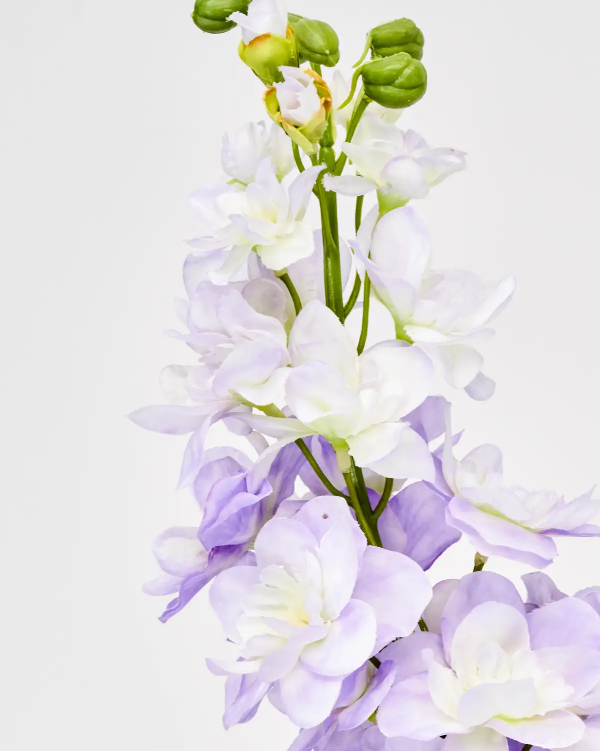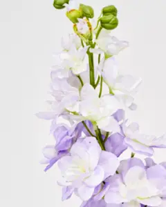Denne kunstige HDDelphinium-stilk er naturtro med sine graduerede lilla toner og detaljerede blade. Den høje stilk er ideel alene i en vase eller som en del af en buket.- Naturtro delphinium-design.- Detaljeret udtryk.- Holdbart design.