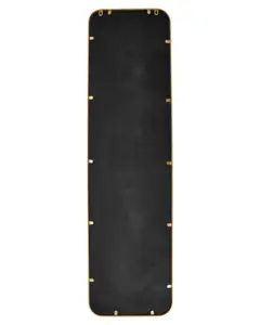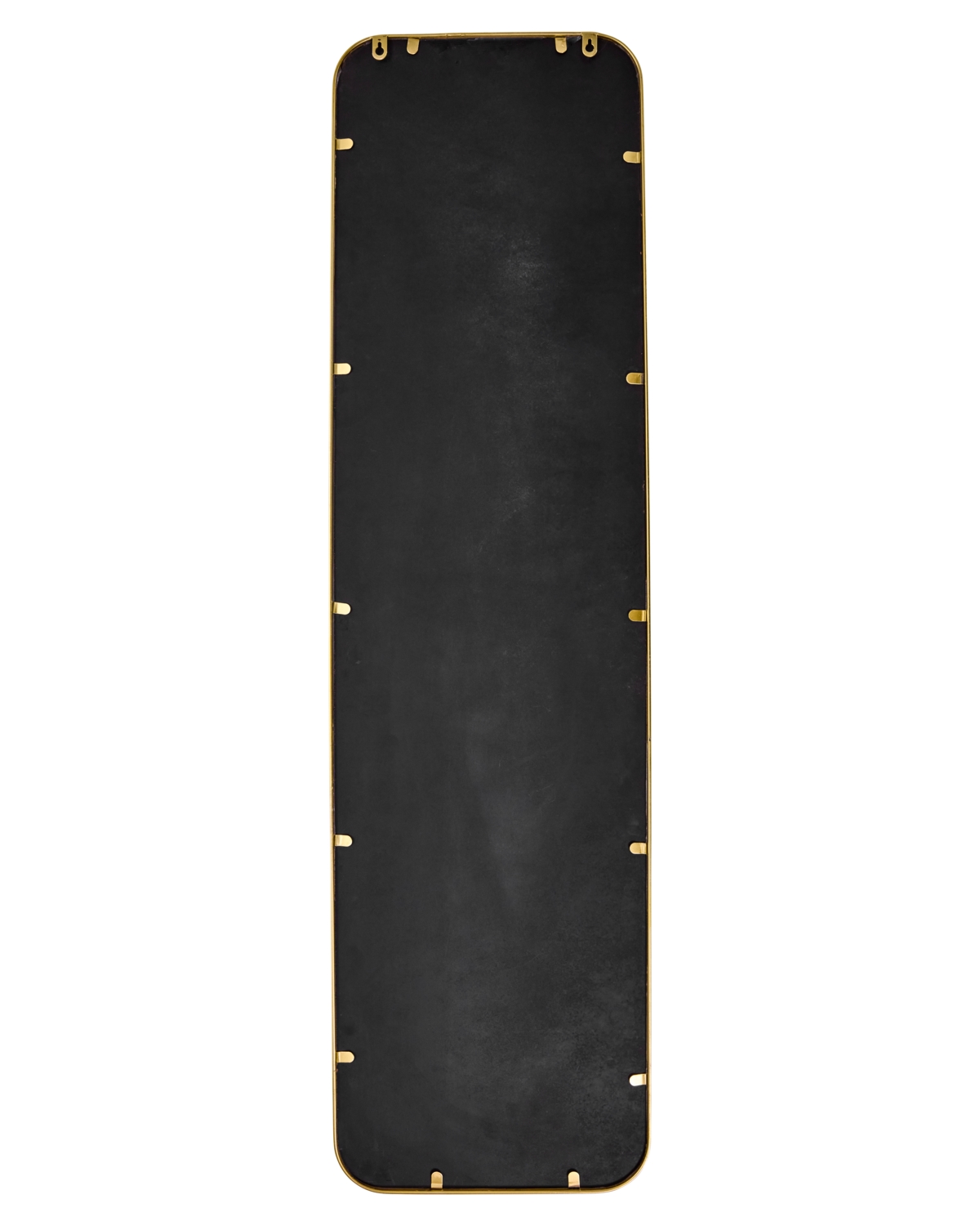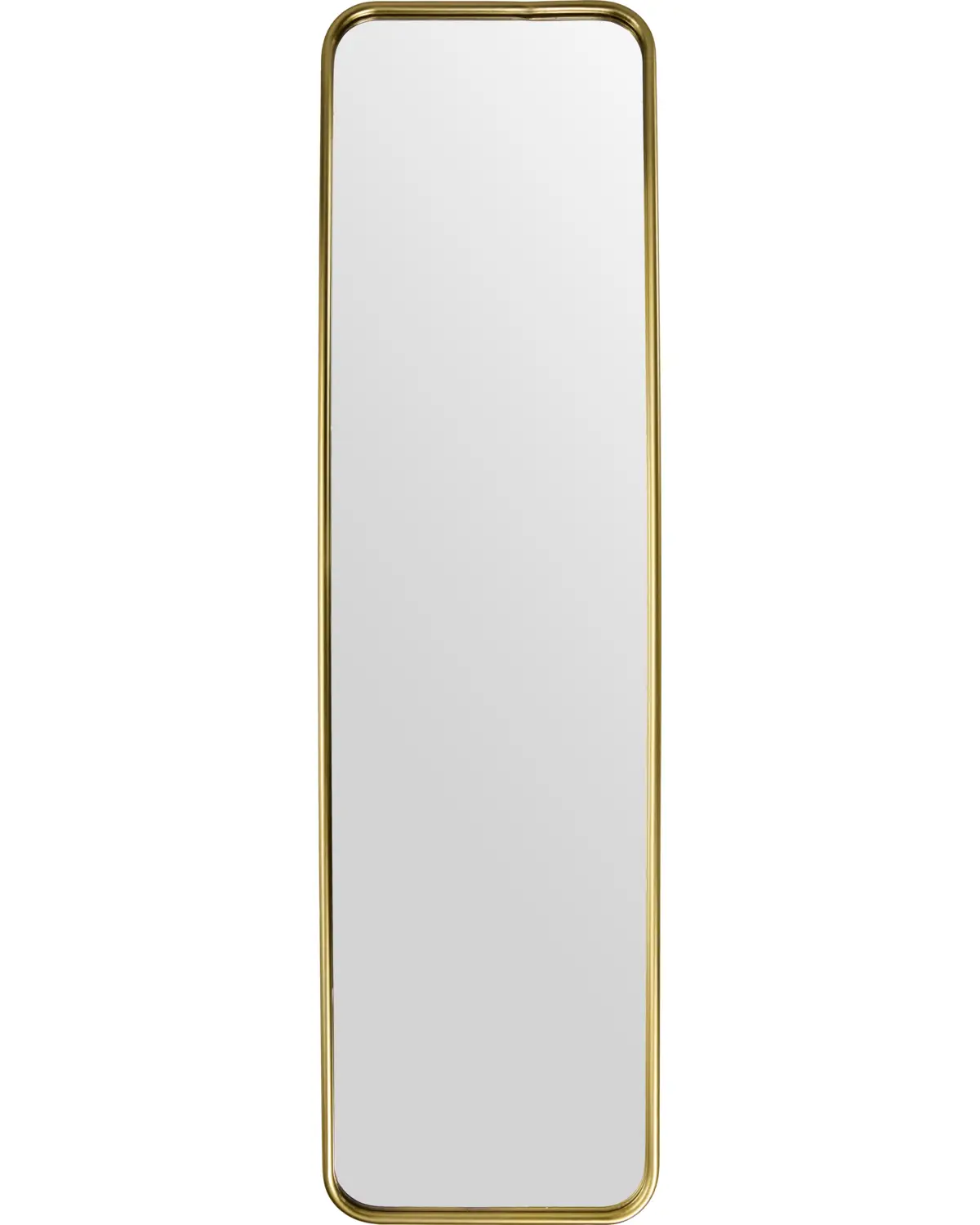 Med dette aflange spejl i gylden ramme skaber du en elegant og sofistikeret stemning i dit hjem. Den minimalistiske form med bløde, afrundede hjørner sætter et moderne præg på enhver indretning, mens den gyldne finish reflekterer lyset smukt og giver rummet dybde og karakter.- Elegant gylden finish- Minimalistisk, tidløst design- Skaber visuel dybde- Perfekt til alle rumHæng det i entréen, soveværelset eller stuen, og lad spejlet blive et stilfuldt samlingspunkt, der er både funktionelt og dekorativt.