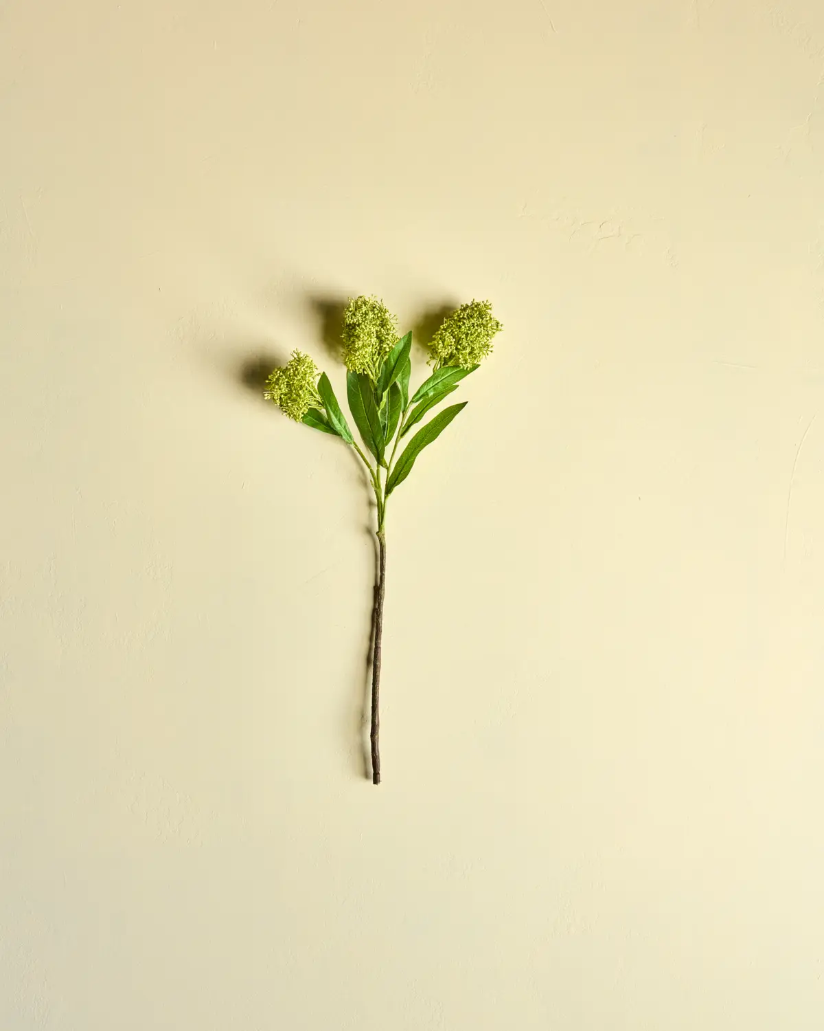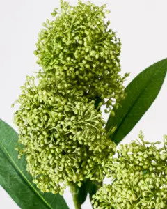 En kunstig og naturtro Skimmia-gren med detaljerede klaser og en frisk, grøn farve, der ligner naturlig Skimmia. Brug den alene eller sammensæt flere for at skabe en fyldig buket.- Naturtro udseende.- Flotte, grønne nuancer.- Holdbart materiale.