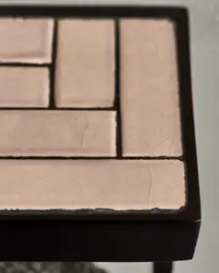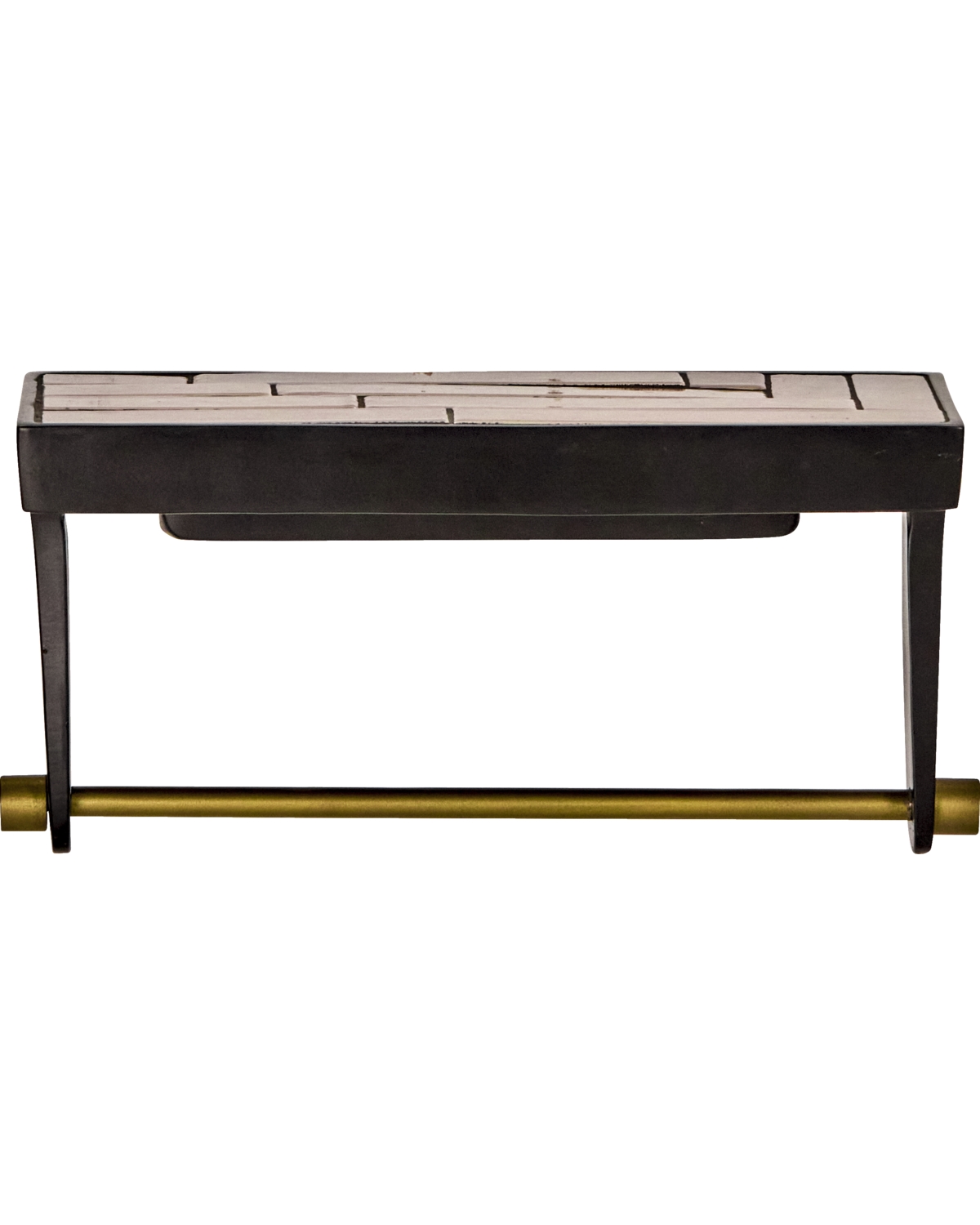 Denne håndlavede hylde kombinerer tidløst design med praktisk funktionalitet, perfekt til at tilføje personlighed til dit badeværelse, køkken eller bryggers. Den sorte aluminiumsramme understøtter en fantastisk overflade af sandfarvede keramiske fliser, mens den antikke messing-behandlede stang nedenunder giver et praktisk stativ til håndklæder eller karklude. Stil dine yndlings fyrfadsstager eller små vaser frem på hylden for at skabe en indbydende atmosfære med unik stil. - Håndlavet med sandfarvede fliser - Sort aluminiumsramme - Antik håndklædeholder i messing - Ideel til badeværelser og køkkener Giv dit hjem karakter og stil.
