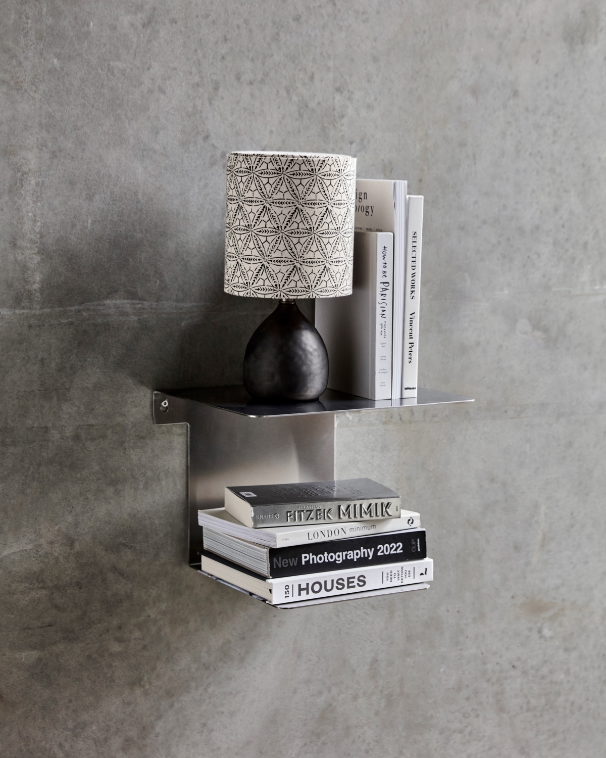Skab et moderne udtryk med denne hylde i børstet rustfrit stål. Det rene og industrielle design løfter dit hjem og giver både funktion og stil, uanset om du bruger den i køkkenet, i stuen eller som natbord.- Børstet rustfrit stål.- Holdbart og slidstærkt materiale.- Nem vægmontering med nøglehulsbeslag.- Tidløst, industrielt design.Sæt dine favoritbøger, -vaser eller -lamper i fokus, og opgrader din væg med funktionel elegance.