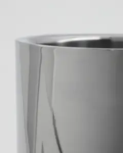 Fuldend hjemmebaren med en isspand i sølvfinish, der både ser eksklusiv ud og holder dine isterninger klar til cocktails og drinks. Den rene, enkle form sørger for god stil i barområdet, uanset om du inviterer til fest eller nyder aftendrinks med venner. Rustfrit stål sikrer lang holdbarhed og en finish, der gør indtryk. Brug den sammen med cocktailshaker eller serveringsbakke for et gennemført udtryk.- Rustfrit stål, slidstærk kvalitet.- Eksklusiv sølvfinish.- Praktisk til hjemmebaren.- Elegant, minimalistisk design.Gør hjemmets barområde til noget særligt med funktionelt design og ægte barstemning.