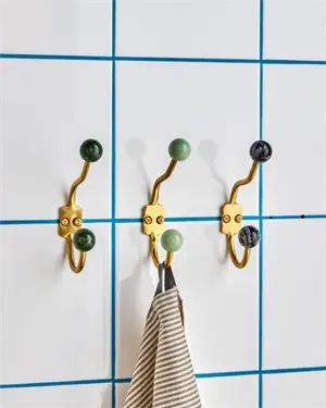 Et sæt håndlavede knager i grønt metal og akryl giver dit hjem et dekorativt pift.De elegante, buede former med runde detaljer skaber et legende, men klassisk udtryk, der gør både entré og soveværelse mere levende og personlige. Brug knagerne til overtøj, tasker eller accessories – og oplev, hvordan den smagfulde farve tilfører varme til din indretning.- Håndlavet klassisk design.- Flot grøn finish i metal.- Sæt med 2 knager.- Dekorativ og funktionel detalje.Løft din indretning med smukke knager, der vækker opmærksomhed i ethvert rum.