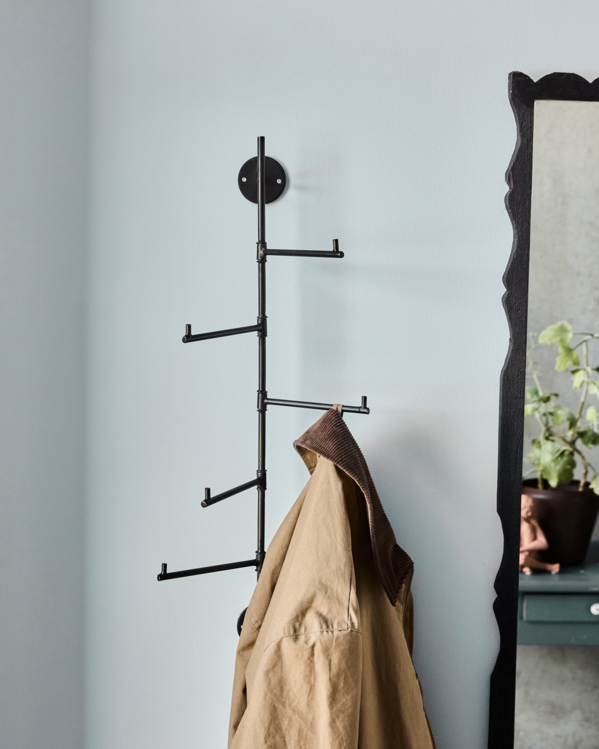 Knagerækken forener funktion og kunst på din væg. De fem drejelige kroge i sort jern giver stor fleksibilitet til både entréen, garderoben og soveværelset. Hver detalje er nøje håndlavet, så du får et unikt og stilfuldt design, der fungerer som blikfang og skaber et elegant indtryk, uanset hvor du vælger at bruge den.- Håndlavet sort jern.- Fem drejelige kroge.- Skulpturelt design.- Brug i flere rum.Opdag, hvordan den løfter både organiseringen og æstetikken i dit hjem.