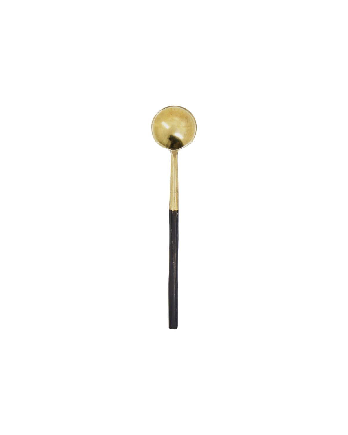 Et sæt med fire håndlavede køkkenredskaber i antik messing og sorte håndtag giver et unikt og varmt udtryk i dit køkken. De er formet med organiske linjer, som gør hvert redskab til noget særligt. Dæk op til både hverdag og fest, og lad redskabernes æstetik løfte din borddækning med et strejf af personlighed og ægte håndværk.- Sæt med 4 redskaber- Håndlavet og unikt design- Rustfrit stål og antik messing- Organisk, dekorativ formSkab stemning og stil, uanset om du serverer til morgenmad, frokost eller middag.