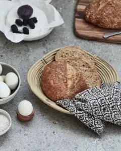 Giv dit køkken et rustikt præg med denne charmerende håndlavede kurv. Den er fremstillet af en blanding af rattan og bambus og har både funktionalitet og stil. Den er perfekt til opbevaring af tørre fødevarer eller som en smuk brødkurv. Den naturlige nuance og den komplicerede vævning gør den til et alsidigt møbel, der passer til enhver køkkenindretning.- Håndvævet håndværk- Fødevaresikker opbevaring- Materialer af rattan og bambus- Dekorativ accent i køkkenetFøj denne smukke kurv til din samling af køkkenopbevaring.
