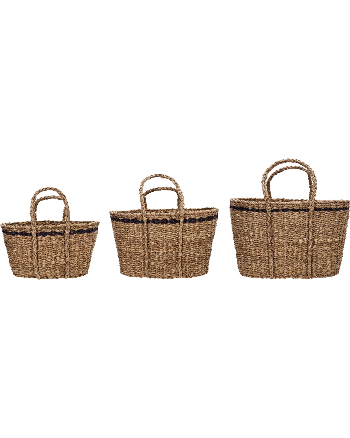 Skab orden og varme i dit hjem med dette sæt af tre håndflettede kurve i naturfarvet søgræs. Det enkle og tidløse design med robuste håndtag matcher enhver stil og gør opbevaring til en æstetisk oplevelse.- Bæredygtigt flettet søgræs.- Sæt med tre størrelser.- Praktiske og dekorative håndtag.- Tidløst, naturligt udtryk.Brug dem til tæpper, strikketøj eller blade – altid en smuk løsning i stue, soveværelse eller badeværelse.