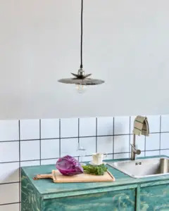 HDHatt-lampeskærmen er lavet af jern i en børstet sølvfinish. Med sit minimalistiske og brede design spreder lampeskærmen et blødt og behageligt lys i rummet. Kombinér den med en ledning med tilhørende fatning for at skabe en stilfuld loftslampe.- Børstet sølvfinish.- Blød lysspredning.- Til brug som loftslampe.- Mål: 30 x 28 x 4,5 cm.
