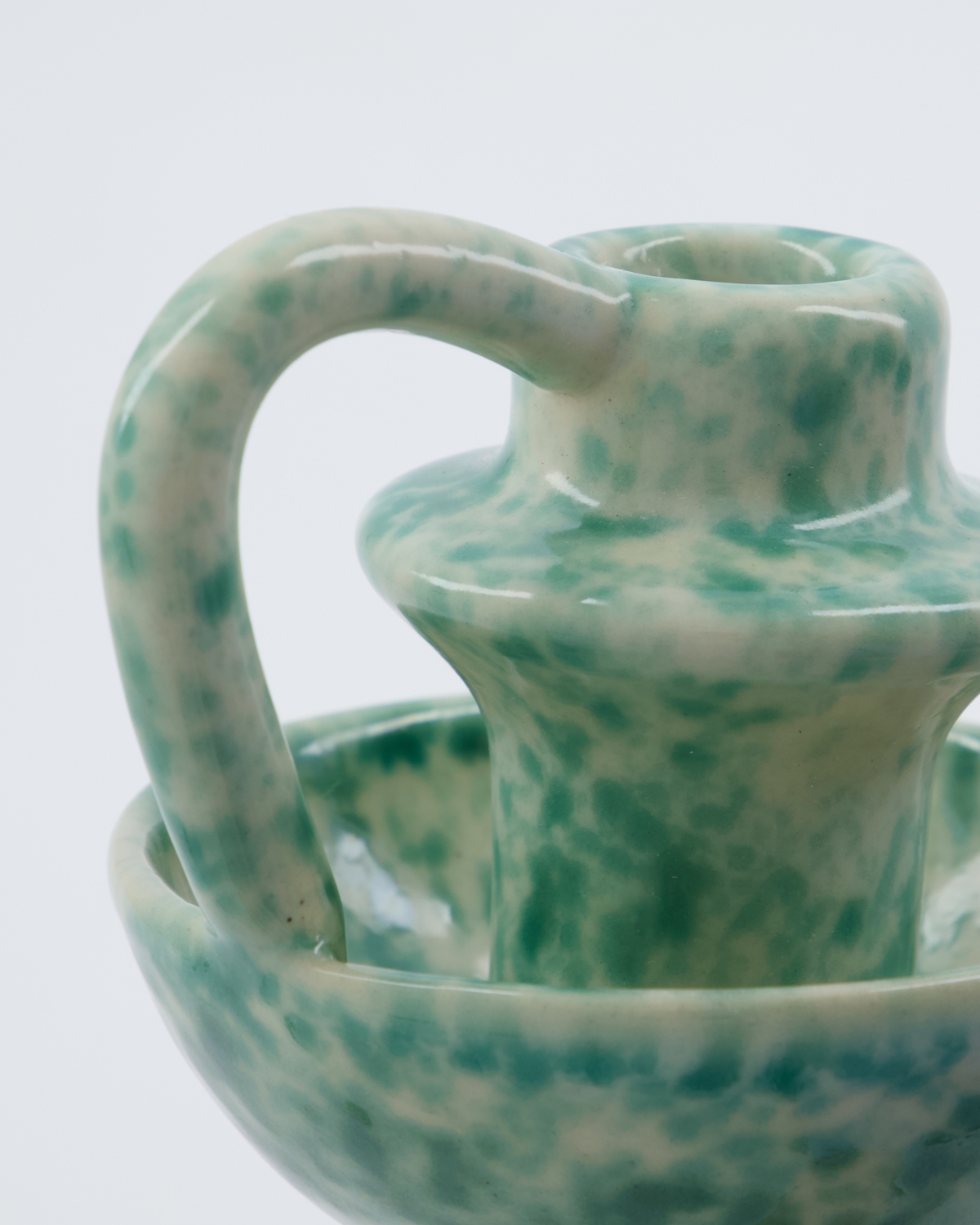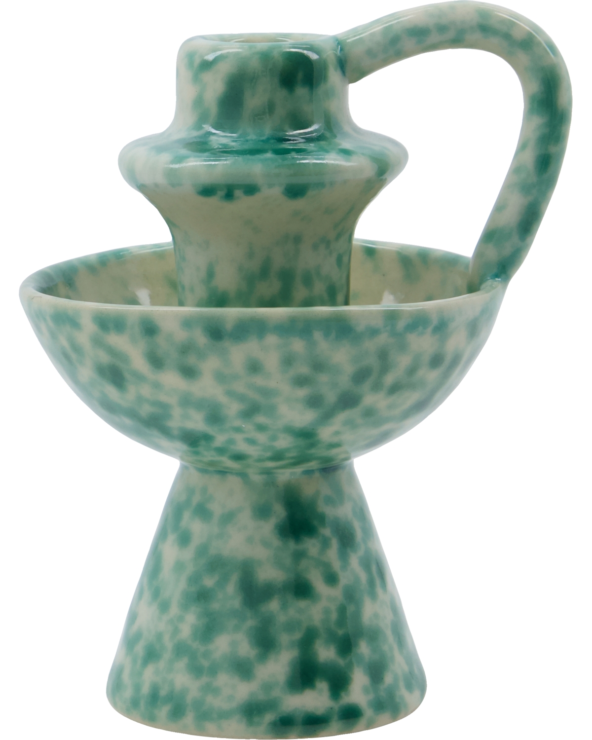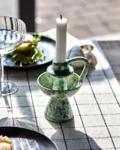 Tilføj en kunstnerisk flair til din indretning med denne håndlavede lysestage i stentøj. Dens blanke grønne glasur bringer et livligt præg på din borddækning, hvilket gør hvert måltid specielt. Designet til koniske stearinlys, dette stykke komplementerer HDDiva- serien perfekt og beriger dit hjem med en levende farvestråle . - Håndlavet stentøjsdesign - Blank grøn glasur finish - Velegnet til koniske stearinlys - En del af HDDiva- serien Lys dit hjem op med denne unikke lysestage.