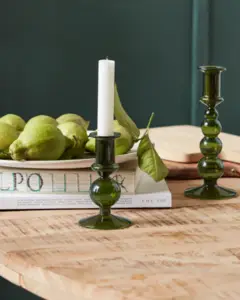 Giv dit hjem et strejf af varme og farve med denne elegante grønne glaslysestage. Den er ideel til at skabe en hyggelig atmosfære og passer smukt sammen med andre stager i samme serie eller med metalvarianter for et unikt look. Den beroligende grønne nuance og det slanke design giver en sofistikeret, men indbydende stemning, der er perfekt til ethvert rum. - Grønt glas giver varme - Passer sammen med metalholdere - Sofistikeret design - Alsidigt indretningselement Lad denne udsøgte grønne lysestage bringe stil og hygge ind i dit hjem.