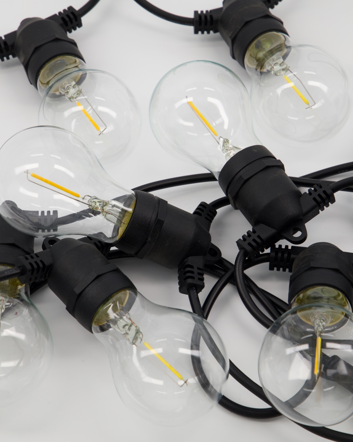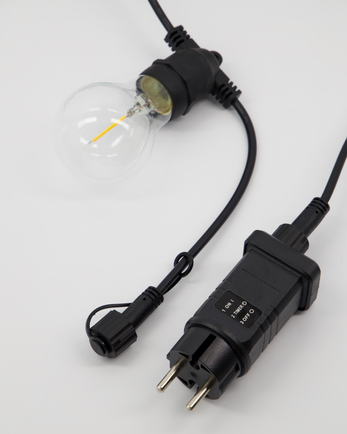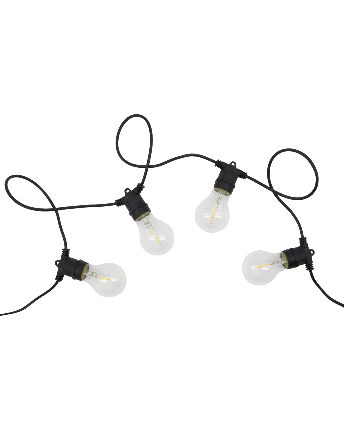 Oplys din have eller stue med disse alsidige lyskæder i en elegant sort finish. Hver lampe har en E27-fatning med maksimalt 0,5W LED, hvilket gør dem energieffektive og perfekte til at skabe en varm atmosfære. Dette sæt er lavet af holdbare materialer og er ideelt til både indendørs og udendørs brug. Tilslut op til tre sæt for en bredere dækning, og nyd bekvemmeligheden ved en timerfunktion, der holder lyset tændt i 6 timer og slukket i 18. Med 10 pærer inkluderet er de perfekte til at tilføje et strejf af elegance til enhver indstilling. - Tilslutter op til tre sæt. - Timer: 6 timer tændt, 18 slukket. - Indendørs og udendørs brug. - Inkluderer 10 LED-pærer. Skab en varm atmosfære i alle omgivelser.