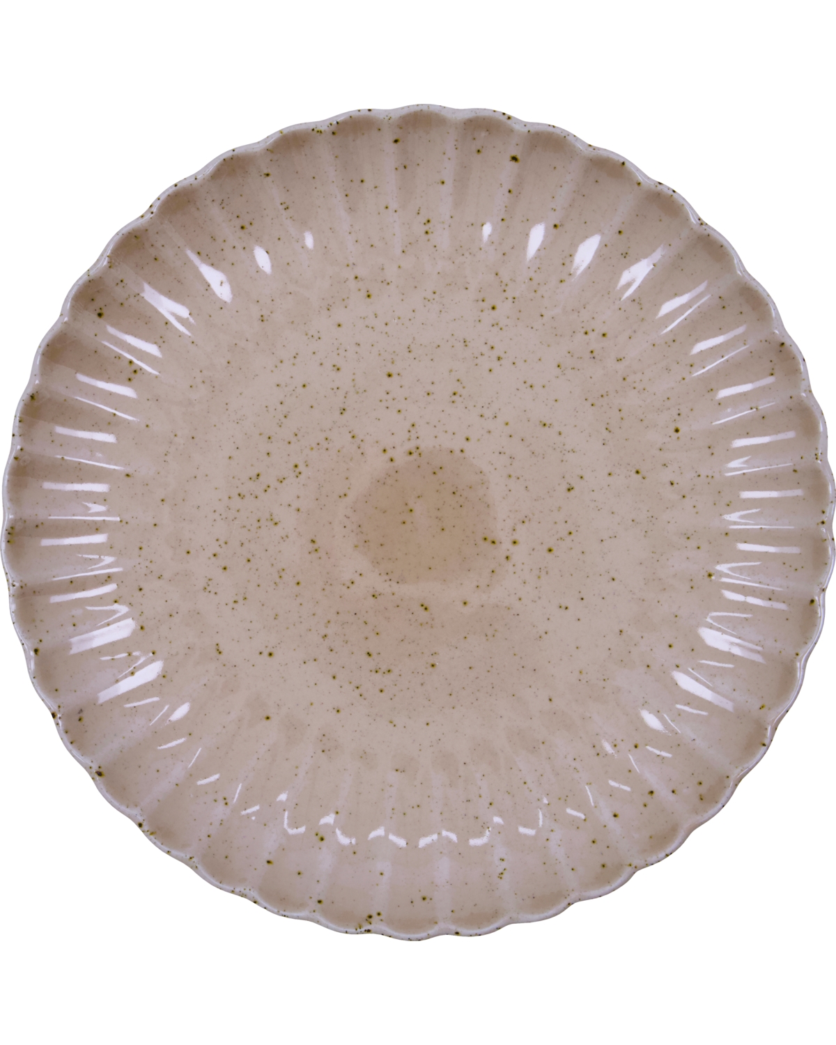 Dæk bordet med en tallerken i rosafarvet stentøj, der løfter stemningen med sine elegante buer og sarte reaktive glasur. Den håndlavede finish gør hver tallerken unik og skaber varme både til hverdagsmaden og festlige middage. Kombiner den med rosa krus og skåle, eller mix med andre toner for et harmonisk, personligt udtryk på middagsbordet.- Håndlavet stentøj.- Smuk reaktiv rosa glasur.- Dekorativ bølget kant.- Giver et indbydende bord.Skab din egen stilfulde borddækning med denne tallerken som midtpunkt.