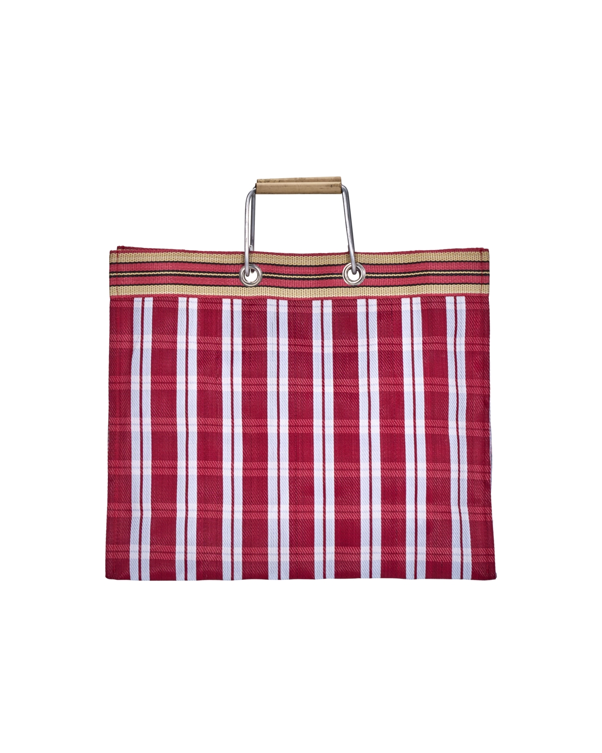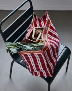 Lav et statement med denne livlige røde tote bag, der er designet til at være både praktisk og iøjnefaldende. Det markante rød- og lyseblå ternede mønster, suppleret med et stribet bånd, forener stil og funktionalitet. Tasken er fremstillet af genanvendt polypropylen og har metalhåndtag og naturlige bambusgreb, der giver en robust, men elegant finish. Dette robuste og stilfulde tilbehør er perfekt til dine indkøb, og det er et must-have til sommerens udflugter.- Bambushåndtag for elegance.- Fedt ternet design.- Holdbar og praktisk.- Sommerens uundværlige accessory.Tilføj denne smarte taske til din samling i dag.