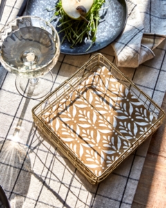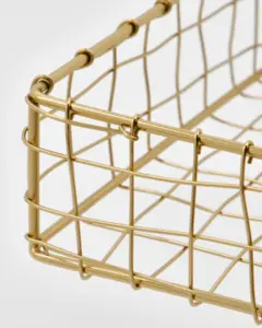 Føj raffinement til din spiseoplevelse med denne elegante servietkurv. Den er fremstillet af jern med en raffineret gylden finish og har et vævet metaldesign, der sikrer både stil og funktionalitet. Den snoede midtertråd holder dine servietter på 16,5x16,5 cm sikkert på plads, hvilket gør den til et ideelt tilbehør til enhver borddækning. Det tidløse design er perfekt til at forbedre det visuelle udtryk på dit spisebord. - Finition dorée élégante- Holder sikkert på servietter- Passer til servietter på 16,5x16,5 cm- Perfekt til ethvert spisebordInspirer din borddækning med denne udsøgte servietkurv.