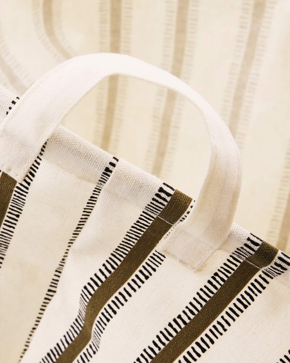 Organiser dit hjem med stil med denne elegante opbevaringskurv. Den råhvide kurv er fremstillet af robust lærred og har et fængslende etnisk print i varme brune toner. Den robuste konstruktion gør, at den kan stå alene eller hænges op, hvilket giver alsidige opbevaringsløsninger til ethvert rum. Denne lysebrune kurv er ideel til opbevaring af alt fra tøj til husholdningsartikler og passer ubesværet ind i din indretning og tilføjer et naturligt og beroligende touch.- Står på egne ben- Etnisk printdesign- Alsidig opbevaringsløsning- Velegnet til ophængningTilføj et strejf af elegance til dit hjem.