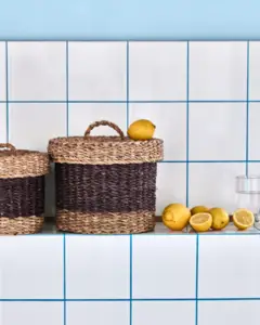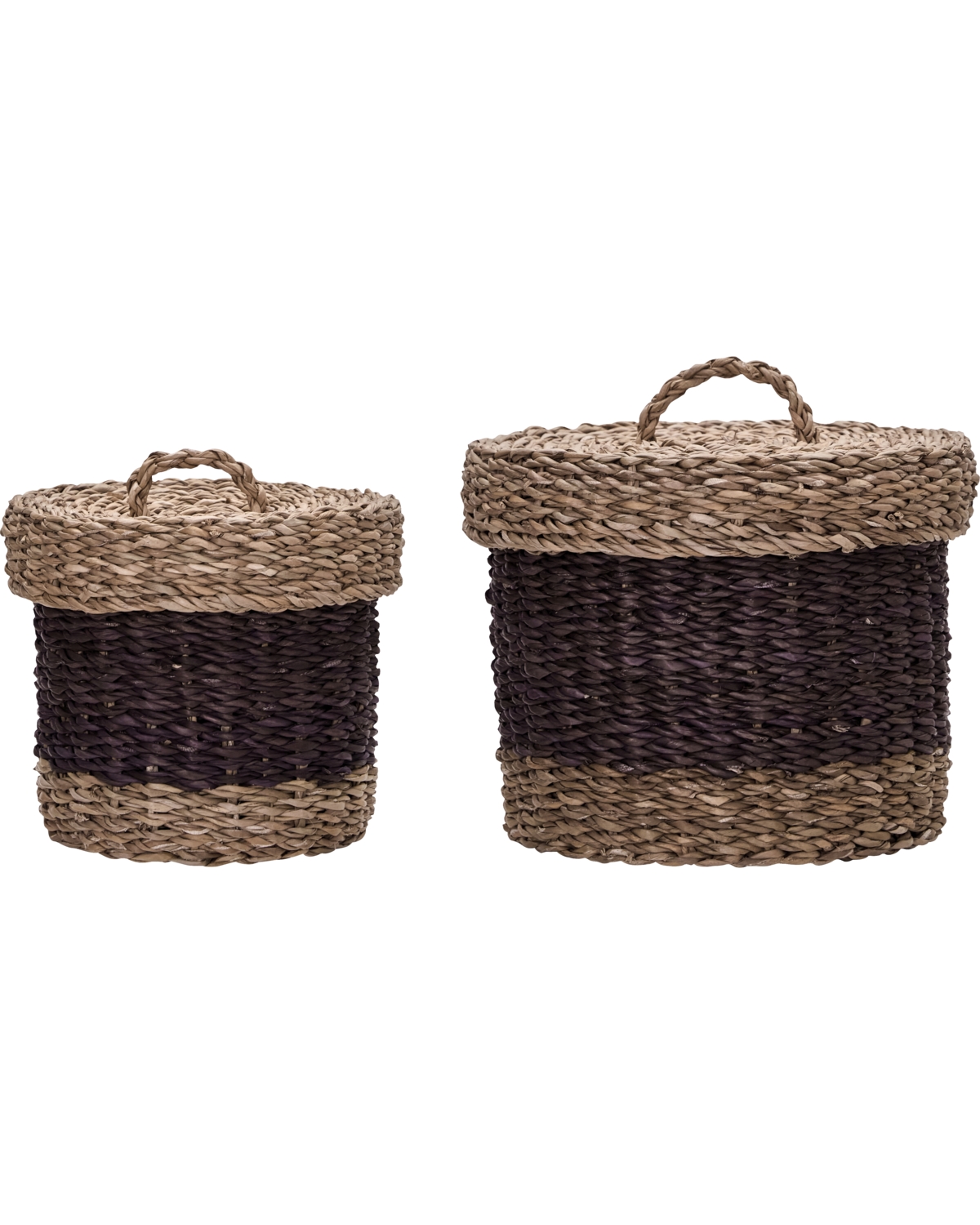 Smukke håndlavede kurve i flettet søgræs pifter din indretning op med varme blomme- og naturfarver.Praktiske låg gemmer nemt alt fra plaider til børnenes legetøj.Perfekte til stuen, entréen eller badeværelset, hvor du ønsker både hyggelig opbevaring og et dekorativt udtryk.Sæt dem sammen, eller spred dem rundt omkring i hjemmet for at understrege et naturligt og afslappet miljø.- Sæt med to kurve- Håndlavet i søgræs- Låg for skjult opbevaring- Varme blomme-/naturfarverFind plads til begge kurve – og nyd den ekstra hygge og orden i hjemmet.
