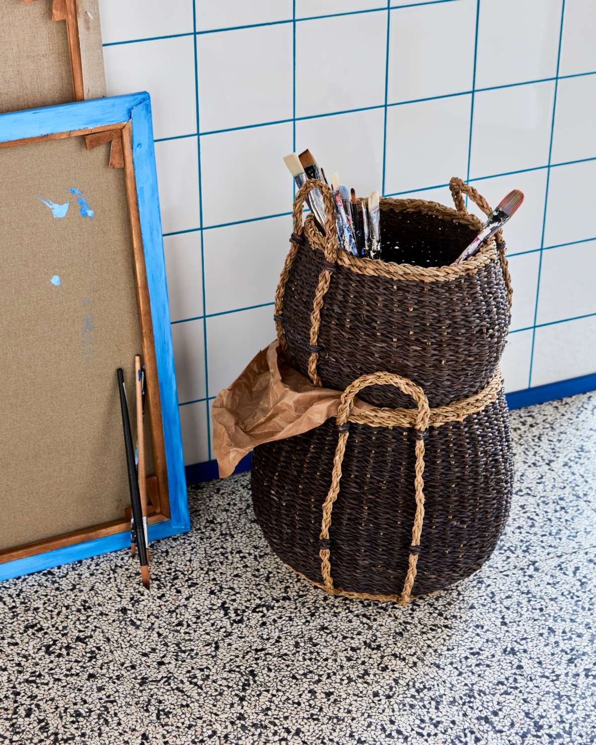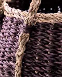 Skab både hygge og orden med dette sæt med to håndlavede opbevaringskurve i flettet søgræs. Den dybe blommefarve løfter dit interiør, mens de runde former og praktiske hanke gør dem ideelle til tæpper i stuen, håndklæder på badeværelset eller legetøj på børneværelset.- Sæt med 2 kurve- Håndlavet af søgræs- Praktiske hanke- Stemningsfuld blommefarveGiv dit hjem et varmt og personligt præg med dekorative kurve til opbevaring.