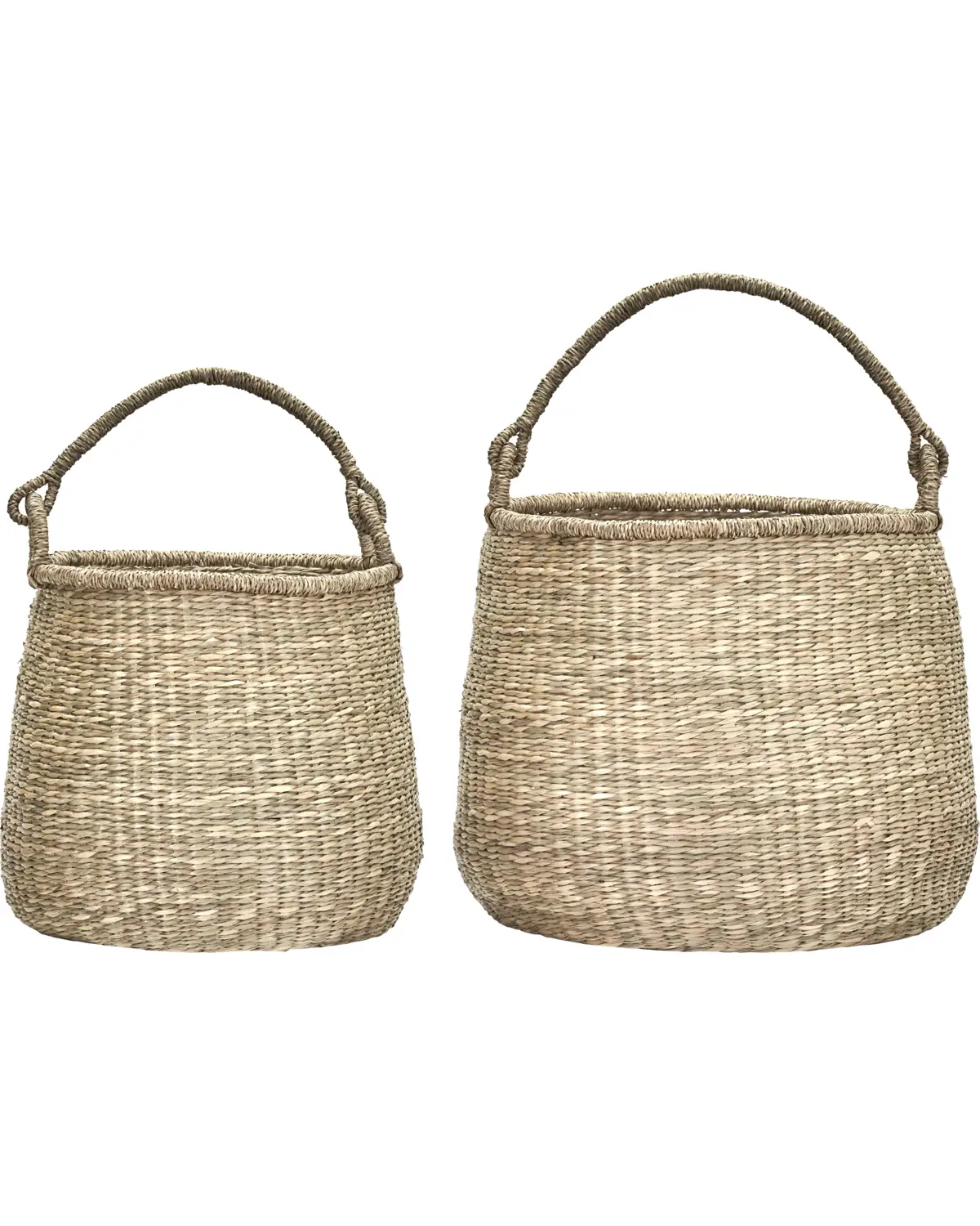 Tilføj varme og charme til dit hjem med disse håndlavede søgræskurve. Dette sæt på to tilbyder alsidige opbevaringsløsninger med en naturlig farve, der passer til ethvert rum. Deres praktiske håndtag gør det nemt at flytte rundt på dem, mens den robuste konstruktion sikrer holdbarhed. Perfekt til opbevaring af tæpper, hjemmesko eller legetøj, disse kurve fungerer også som dekorative stykker, der bringer et strejf af natur indendørs. - Håndlavet søgræsdesign - Sættet indeholder to størrelser - Praktiske, robuste håndtag - Tilføjer charme til interiøret Organiser med stil og bring naturen ind i dit hjem.