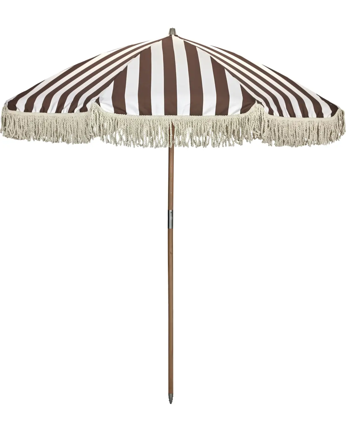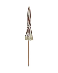 Forvandl din udendørsoplevelse med denne elegante parasol. Med et design af brede brune og råhvide striber med dekorative råhvide frynser, tilføjer den et strejf af klassisk stil til din have, balkon eller strand. Denne parasol er lavet med en holdbar polyester baldakin og en robust bøgetræstang, og kombinerer perfekt funktion med tidløst design. Samlingen er ligetil, og den inkluderer en praktisk stoftaske til nem opbevaring og transport, hvilket gør den til et ideelt valg for dem, der nyder alsidighed og stil i udendørs rum. - Samling påkrævet - Nemt opbevaring med stoftaske - Klassisk stribet design - Dekorative frynser Fuldend dit udendørs setup med denne stilfulde parasol.