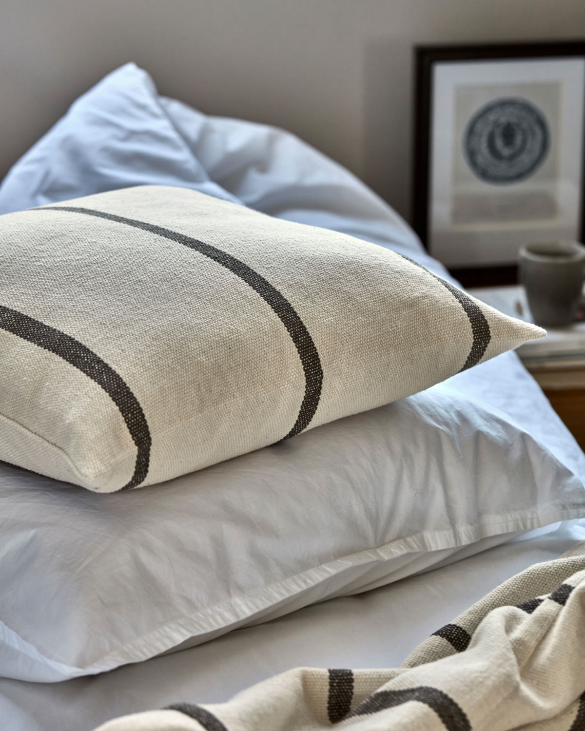 Tilføj et raffineret touch til din boligindretning med dette elegante pudebetræk. Det er fremstillet af blød bomuld og har en klassisk off-white base suppleret med mørkebrune vævede striber. Det moderne, minimalistiske design passer nemt sammen med forskellige stilarter og giver et sofistikeret præg til ethvert rum. Den utroligt bløde tekstur sikrer komfort, samtidig med at den forbedrer den æstetiske appel i din sofa eller lænestol.- Superblødt bomuldsstof- Moderne, minimalistisk design- Alsidige muligheder for styling- Mørkebrune vævede striberOpfrisk din stue eller dit soveværelse med dette stilfulde pudebetræk. Mix og match for et personligt look.