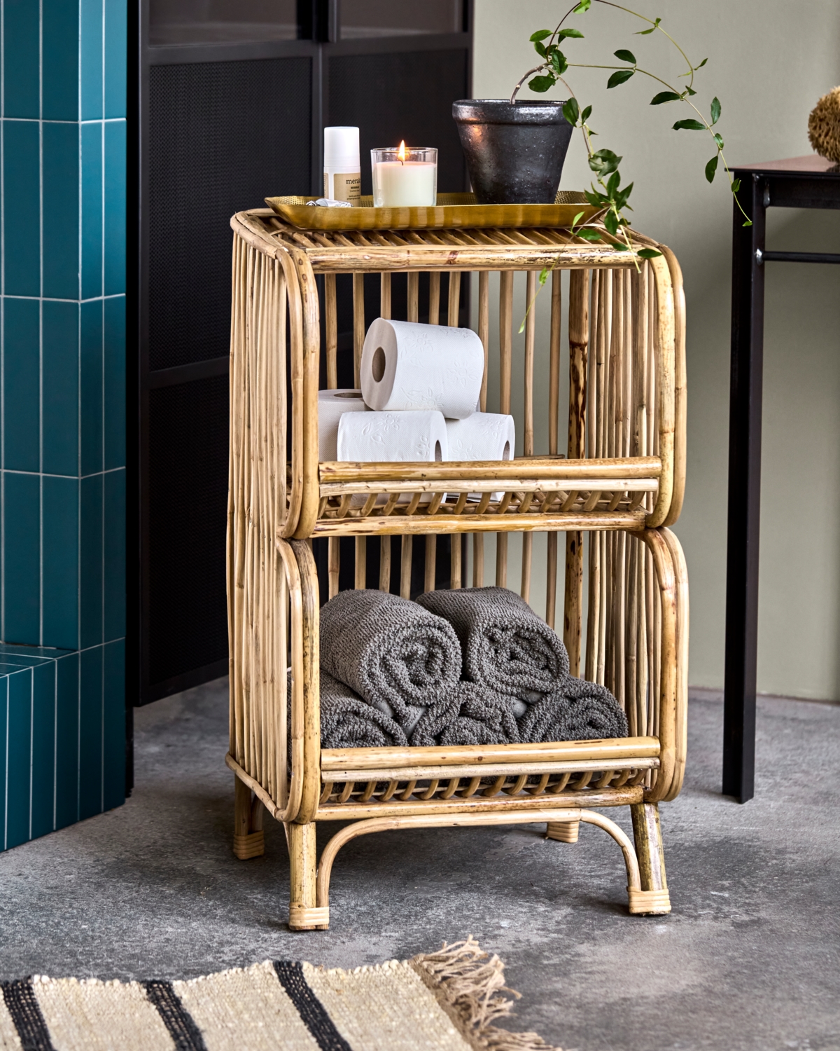 Håndlavet af naturlig sukkerrør bringer dette stykke et strejf af natur og varme til dit hjem. Med sit stilfulde og praktiske design passer den til forskellige rum som badeværelset til håndklæder eller stuen til tæpper og strikkeudstyr. De unikke variationer i finish og størrelse fremhæver dens håndværksmæssige kvalitet, hvilket gør hvert stykke unikt. Placer en bakke ovenpå for at vise dine yndlingsgenstande og personliggøre dit interiør. - Håndlavet naturligt stokdesign . - Alsidigt til ethvert rum. - Unik finish og størrelse. - Ideel til personlig styling. Tilføj dette charmerende stykke til din indretning og nyd dens naturlige appel.