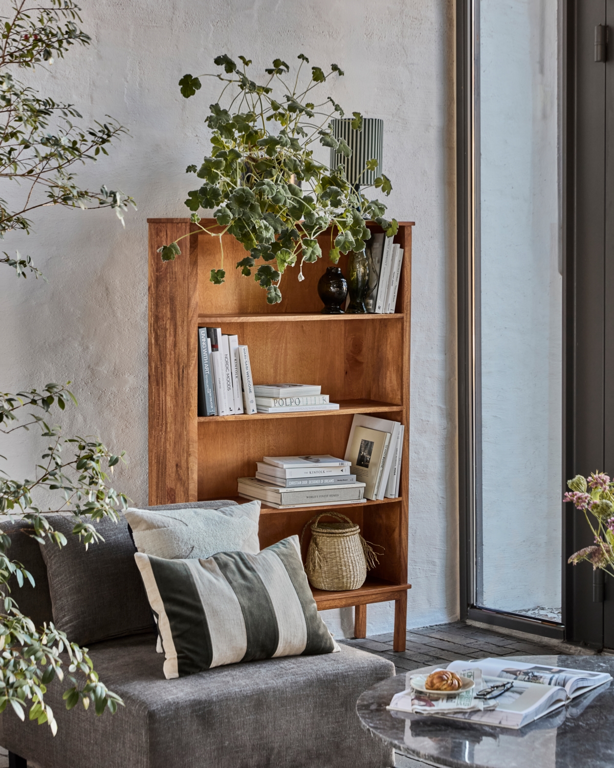 Denne håndlavede reol i mangotræ er en smuk og tidløs tilføjelse til dit hjem. Med sine raffinerede, rillede gavle og antikke brune farve tilbyder den både stil og funktionalitet. Den er ideel til at organisere bøger, kurve eller dekorative elementer i stuen eller spisestuen. Den alsidige reol pryder enhver boligindretning og tilbyder en elegant og eksklusiv opbevaringsløsning, der står flot i ethvert rum.- Håndlavet og unikt design- Raffinerede, rillede gavle- Stilfuld antik brun farve- Alsidig til flere rumTilføj denne tidløse reol til din indretning og skab et sofistikeret udtryk.