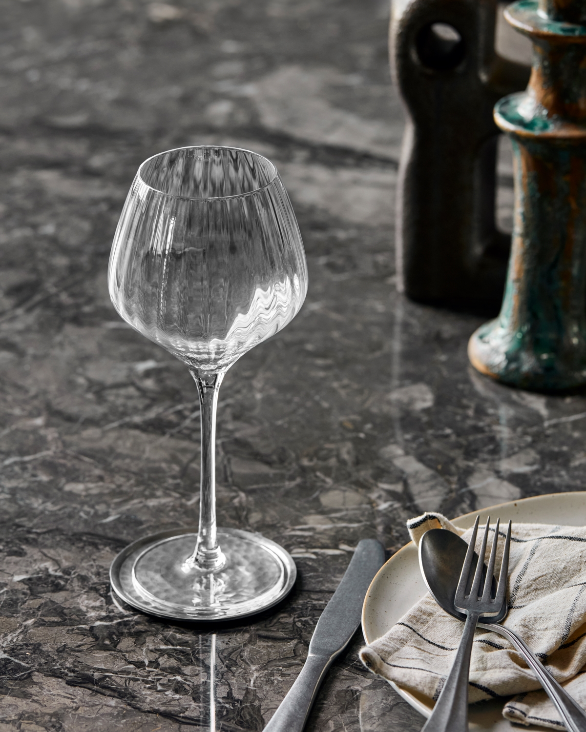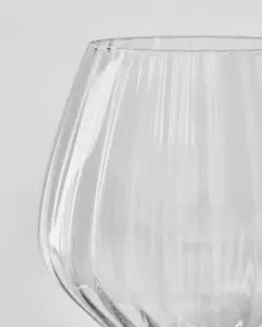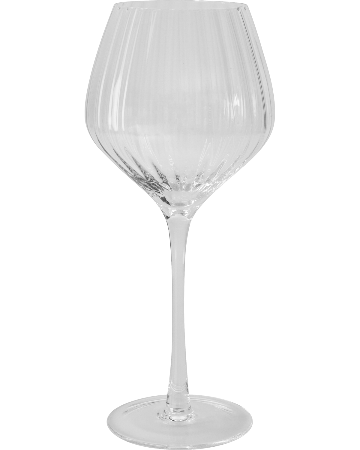 Nyd et glas rødvin med stil med dette mundblæste vinglas med rillede detaljer. Det klare glas og den ballonformede skål fremhæver smag og aroma, mens designet giver borddækningen et sofistikeret løft.- Mundblæst, håndlavet glas.- Elegant rillemønster.- Bevarer aroma og smag perfekt.- Klart glas med flot lysrefleks.Gør hverdagsmiddagen eller festbordet ekstra indbydende – kombiner flere glas for at skabe et elegant helhedsindtryk.