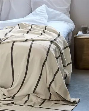 Tilføj et strejf af moderne elegance til dit soveværelse med dette smukt udformede sengetæppe. Det råhvide bomuldsstof, der er vævet med mørkebrune striber, giver en superblød tekstur og et stilfuldt look. Med sit minimalistiske design passer det problemfrit ind i enhver indretningsstil og skaber en varm og indbydende atmosfære.- Super blødt bomuld- Moderne, vævede striber- Passer til moderne interiører- Tilføjer elegance til soveværelsetOpdater din soveværelsesindretning med dette smarte sengetæppe.