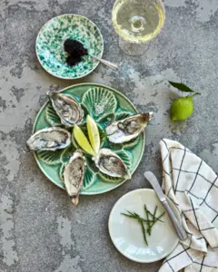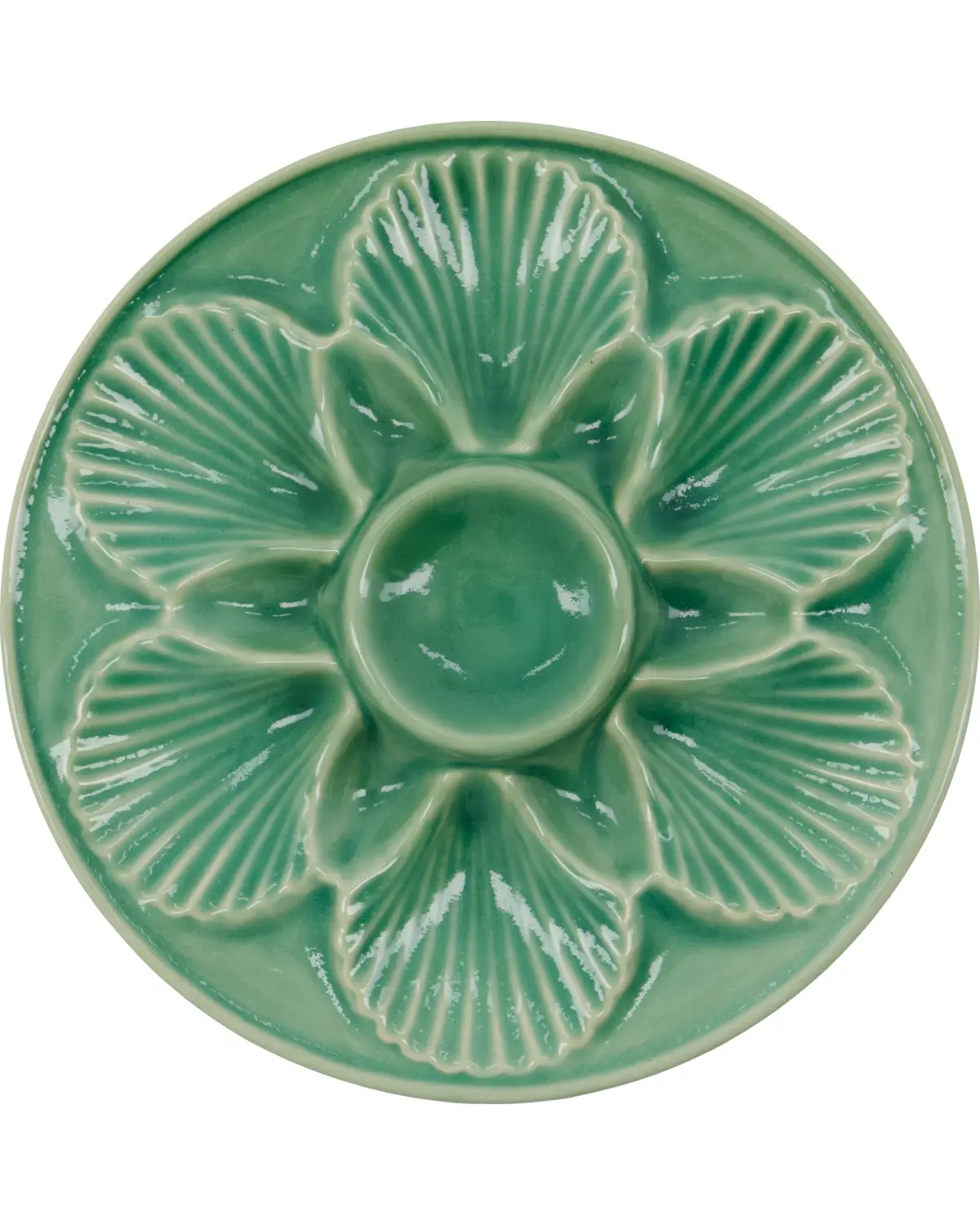 Tilføj et strejf af elegance til dit spisebord med denne håndlavede grønne serveringsplade i stentøj. Dens blanke glasur og tidløse design gør den perfekt til at præsentere østers eller en række andre retter. Denne tallerken fuldender ikke kun din borddækning, men skaber også en indbydende atmosfære med sin unikke karakter og stil. - Håndlavet stentøjsstykke - Blank grøn finish - Ideel til alsidig servering - Tidløst design med karakter Tilføj denne smukke tallerken til din spisesamling.