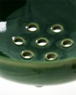 Denne håndlavede skål fra House Doctor kombinerer håndværk med funktionelt design. Fremstillet af 100 % stentøj og færdiggjort med en karakteristisk grøn finish, der giver hver skål sit eget præg. De små ben hæver skålen fra overfladen, mens hullerne i bunden sikrer effektiv dræning.