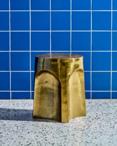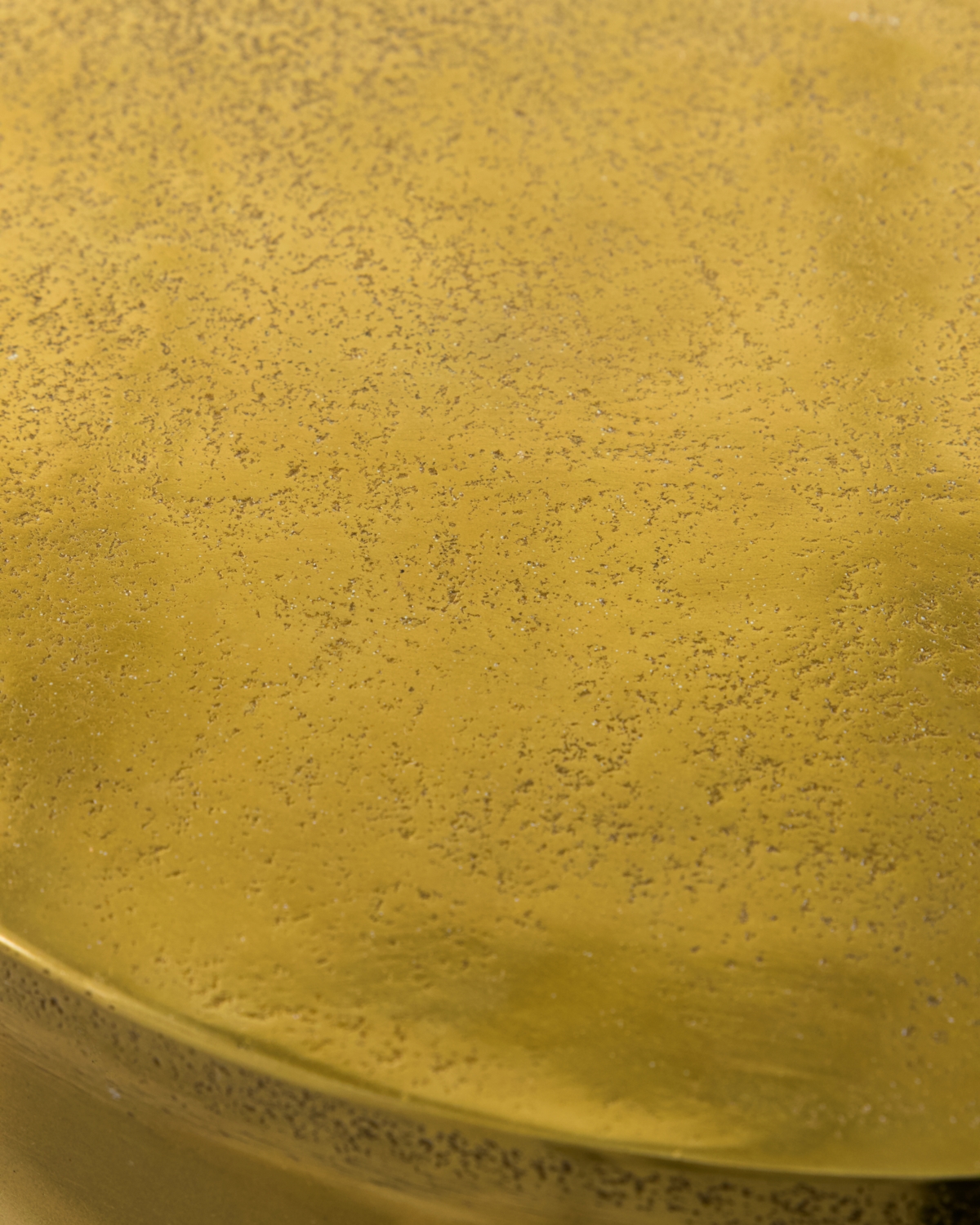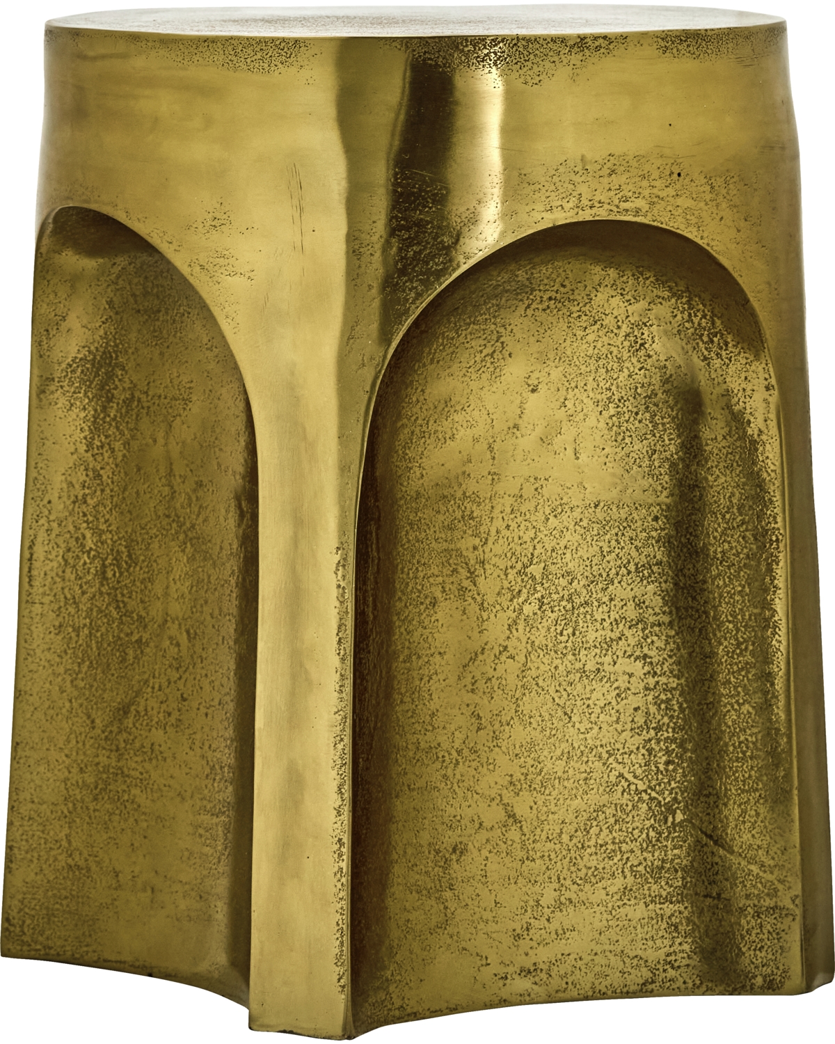 Et skulpturelt sidebord med organisk form giver varme og elegance i din stue, i din entré eller som natbord. Den håndlavede, antikguldfarvede finish i aluminium løfter indretningen med sit eksklusive og karakterfulde udtryk.- Unikt, håndlavet design.- Aluminium med antik guldfinish.- Skulpturel og organisk form.- Funktionelt i flere rum.Placer bordet alene som et statement-møbel, eller kombiner med andre teksturer for et moderne look.