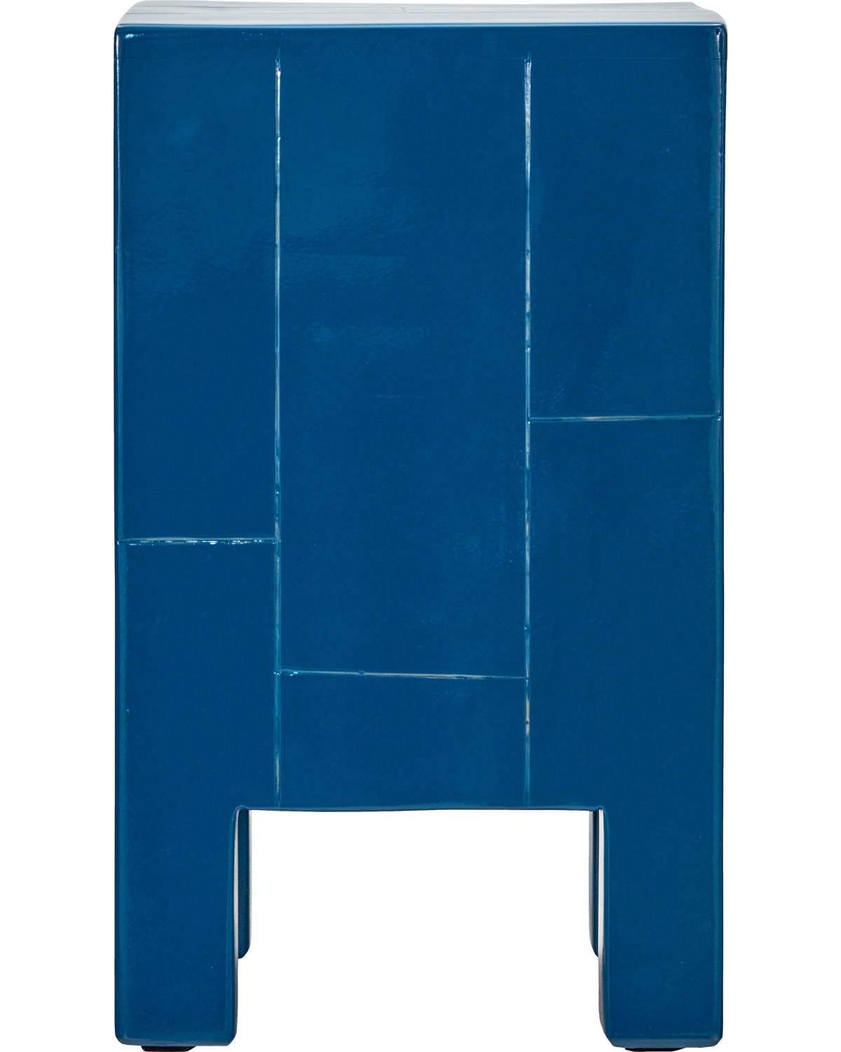 Et sidebord med blå højglansfinish sætter et markant og moderne præg på din indretning.Håndlavet med mangotrækakler og har en skulpturel, geometrisk form, der fanger øjet fra alle vinkler. Overfladen reflekterer lyset smukt og inviterer til kreativ styling – brug det ved sofaen, som natbord eller som base for din yndlingsvase eller lampe.- Håndlavet unikt design.- Blå højglansfarve.- Mangotræ og MDF.- Skulpturelt, markant udtryk.Løft din stue eller soveværelse med et bord, der ikke går ubemærket hen.