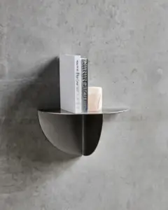 Denne håndlavede væghylde med sit halvcirkelformede design og finish i børstet sølv giver øjeblikkeligt din indretning et et moderne, industrielt præg. Sæt den op i entréen til nøgler og post. Eller i badeværelset til duftlys og små planter. Eller brug den i stuen som en cool kontrast til bløde tekstiler og træmøbler.- Håndlavet i holdbart metal.- Elegant finish i børstet sølv.- Dekorativ geometrisk form.- Stilsikker opbevaringsløsning.Lad hyldens rå elegance og skarpe linjer skabe balance i dit hjem – en perfekt blanding af funktion og raffineret stil.