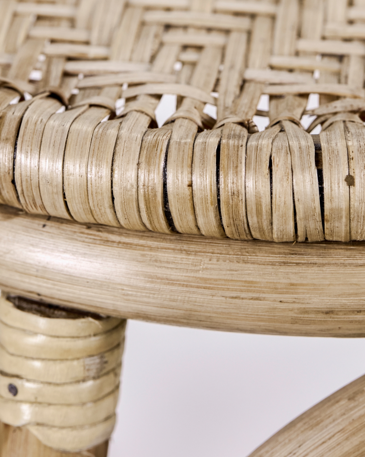 Denne skammel er håndlavet af naturlig sukkerrør og bringer rustik charme og alsidighed til dit hjem. Dens indviklede håndvævede design tilføjer varme, hvilket gør den til en perfekt tilføjelse til dit badeværelse, entre eller soveværelse som skammel eller sidebord. Placer den ved spisebordet for et strejf af håndværksmæssig elegance. Hvert stykke kan have små variationer i finish og størrelse, hvilket tilføjer en unik karakter til dit interiør. - Håndvævet stokhåndværk - Naturlige farvevariationer - Alsidig til ethvert rum - Ideel som skammel eller sidebord Tilføj et strejf af naturlig elegance til dit hjem.