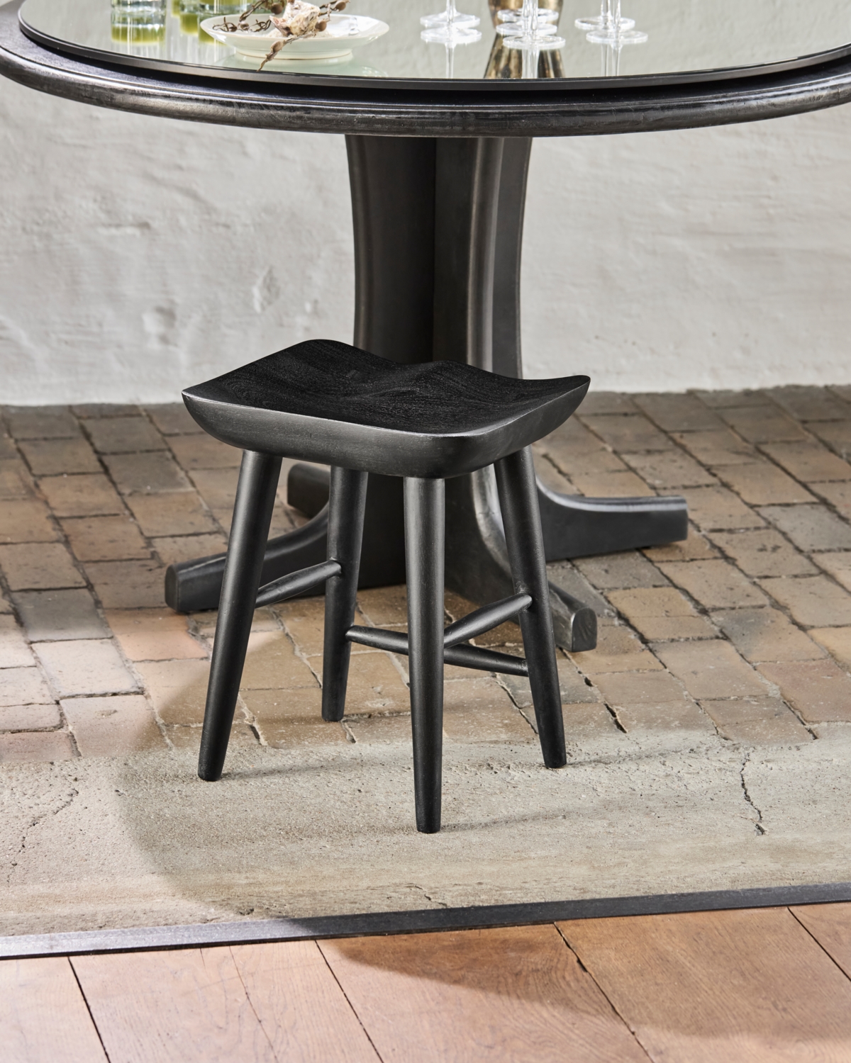 Denne sorte skammel, lavet af mangotræ, kombinerer komfort med stil. Det elegante design har en støttende fodstøtte, hvilket gør den perfekt til dit køkken, entré eller som ekstra siddeplads ved spisebordet. Den alsidige sorte finish komplementerer forskellige interiører og tilbyder en praktisk og stilfuld tilføjelse til dit hjem. - Komfortable siddepladser med fodstøtte - Holdbar konstruktion i mangotræ - Alsidig sort farve - Velegnet til flere interiørindstillinger Inkorporer denne stilfulde skammel i dit hjem for både funktion og design.