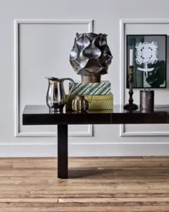 Skab et markant midtpunkt i stuen med dette håndlavede sofabord i sort højglansfinish og brede mangotrækakler. Designet balancerer cool elegance og robusthed, hvilket giver wow-effekt i boligindretningen. Kombiner bordet med bløde tekstiler eller enkelt service for at fremhæve dets unikke karakter.- Håndlavet og eksklusivt design.- Sort højglanslak.- Mangotræ for unikt udtryk.- Markant indslag i stuen.Fuldend et moderne hjem med et bord, der skaber blikfang og inspirerer til nytænkende indretning.