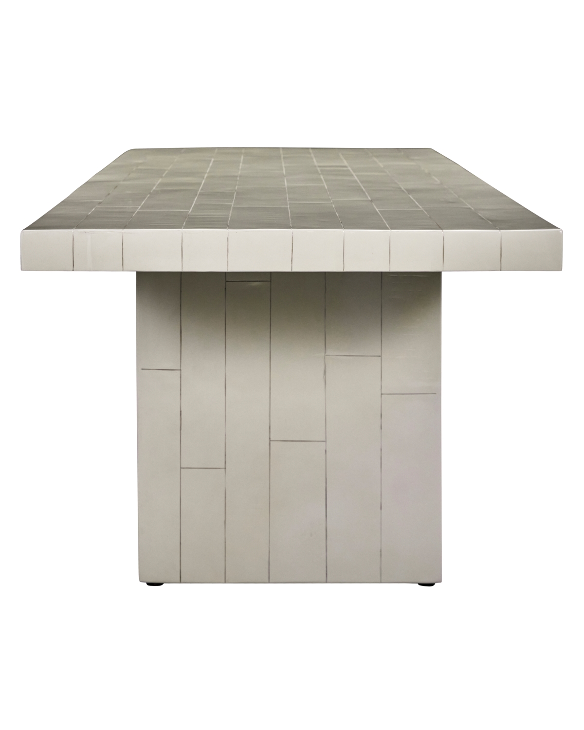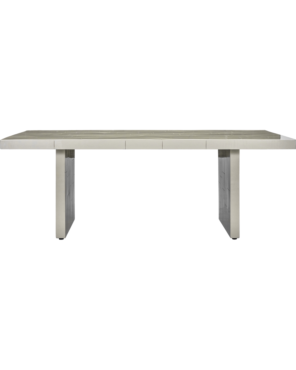 Bring wow-effekten ind i spisestuen eller kontoret med dette bord, hvor den blanke sandfarvede overflade og de brede kakler i mangotræ mødes i et skulpturelt udtryk. Hver detalje er håndlavet og emmer af eksklusivitet. Kombiner det med din yndlingslampe eller markante stole, og lad det være rummets naturlige samlingspunkt, der løfter hele din indretning.- Eksklusivt håndlavet design.- Blank sandfarvet overflade.- Robuste ben i jern.- Markant udtryk i hjemmet.Lad dig inspirere af formen, og udtryk dig med personligt tilbehør på bordpladen.