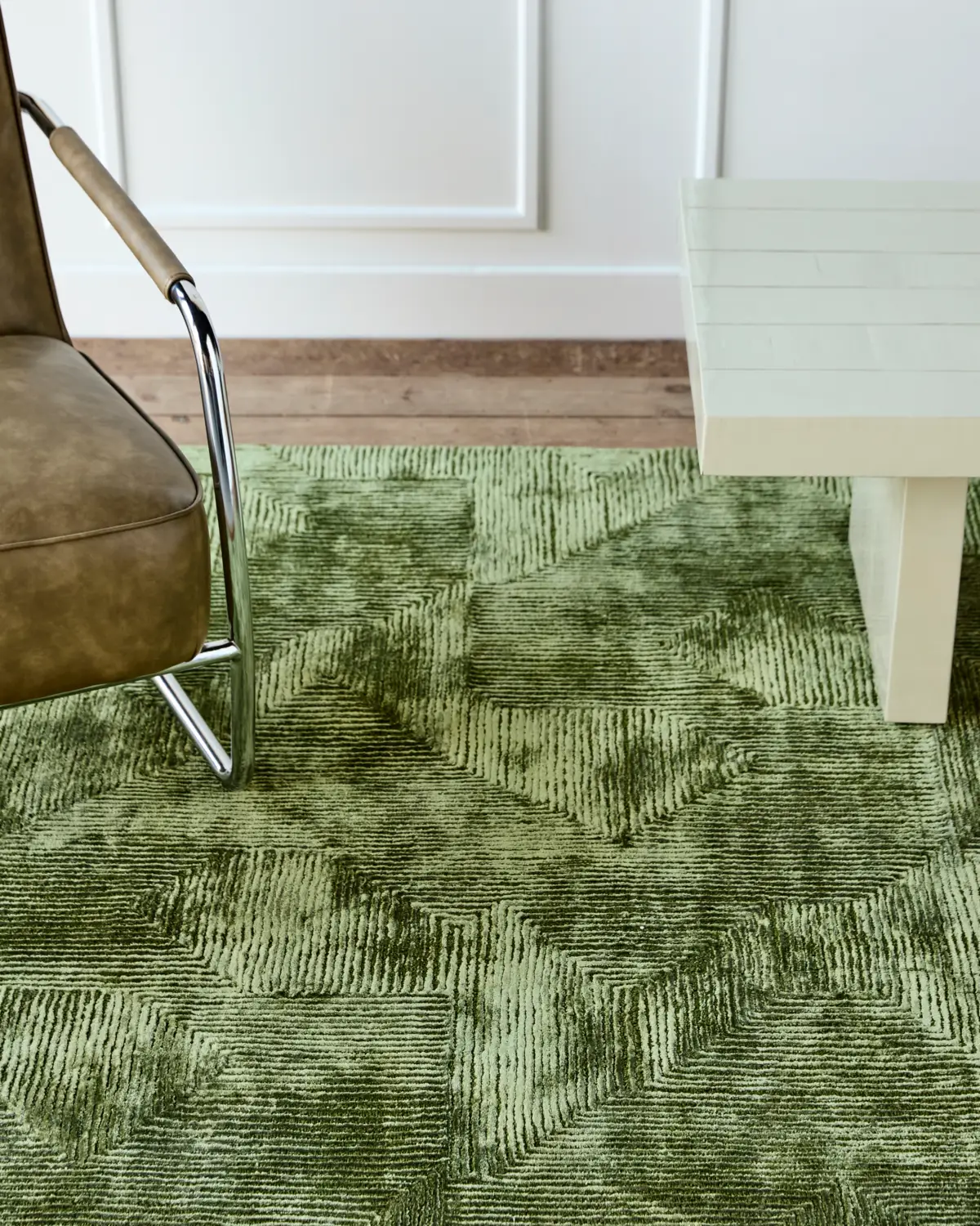 Et blødt, glansfuldt tæppe i grøn giver elegance og æstetik i dit hjem. Et diskret grafisk mønster giver rummet personlighed og et luksuriøst islæt. Oplev følelsen af eksklusiv stemning og varme under fødderne, uanset om tæppet bruges i stuen, i soveværelset eller som vægkunst.- Håndlavet kvalitet- Glansfuldt viskosemix- Sofistikeret grafisk mønster- Alsidig styling i hjemmetIndret med personlighed og komfort – lad tæppet skabe din næste æstetiske forvandling.