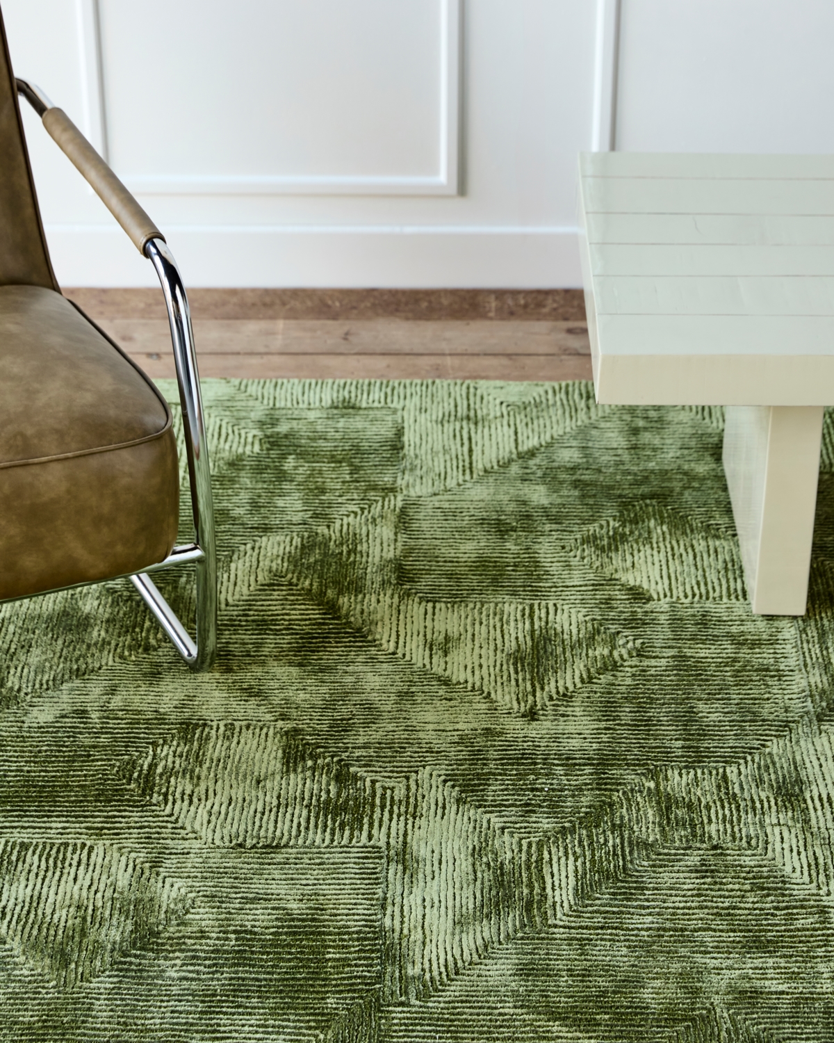 Dette glansfulde, håndlavede tæppe i grøn tilfører din indretning både elegance og eksklusiv æstetik. Det grafiske mønster skaber en sanserig oplevelse, uanset om du lægger det i stuen, i soveværelset eller bruger det som vægkunst.- Luksuriøst, blødt viskosemix.- Eksklusivt håndlavet finish.- Grafisk mønster med dybde.- Fleksibel placering i hjemmet.Skab et stemningsfuldt og indbydende hjem med karakter og personlighed.