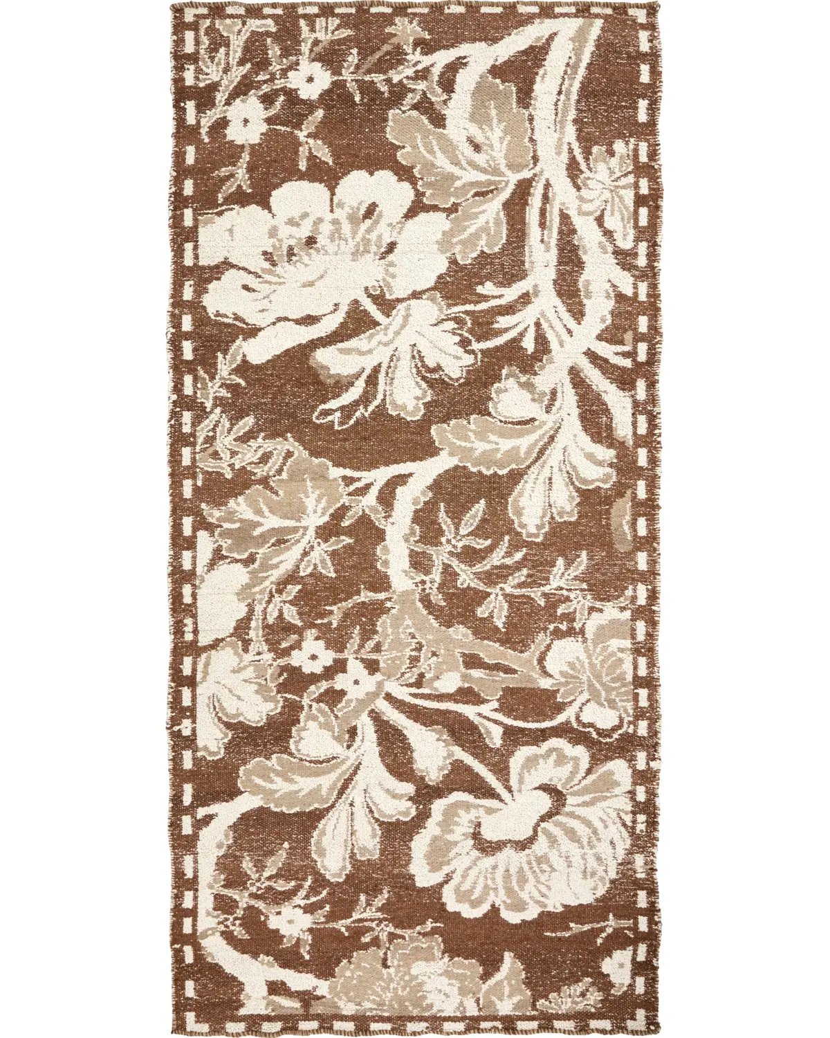 Lad et håndlavet tæppe i varme, brune nuancer løfte din indretning med raffineret karakter.Naturmaterialer som uld og bomuld sikrer både blødhed og holdbarhed, mens det diskrete mønster giver rummet en blid, feminin stemning. Tæppet er perfekt i entréen for at give et varmt førstehåndsindtryk, i soveværelset for at skabe ekstra hygge eller i stuen som et stilfuldt samlingspunkt.- Håndlavet kvalitet.- Blød uld og bomuld.- Raffineret, feminint design.- Perfekt til stue, soveværelse eller entré.Giv din indretning et naturligt og indbydende touch med et smukt tæppe i tidløse nuancer.