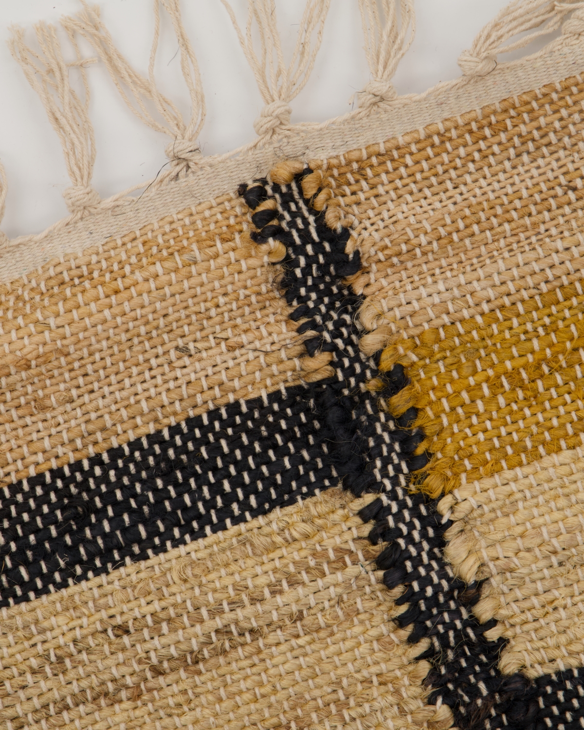 Dette tæppe er håndlavet af en blanding af jute og bomuld og har et fantastisk flerfarvet mønster i varme nuancer, som giver dit hjem et moderne og hyggeligt præg. De frynsede kanter giver et ekstra lag af stil, så det passer perfekt til din stue, under spisebordet eller i en rummelig gang.- Fremstillet af jute og bomuld- Flerfarvede varme nuancer- Detaljer med frynser i kanten- Perfekt til opholdsrumTilfør varme og charme til din indretning med dette smukke tæppe.