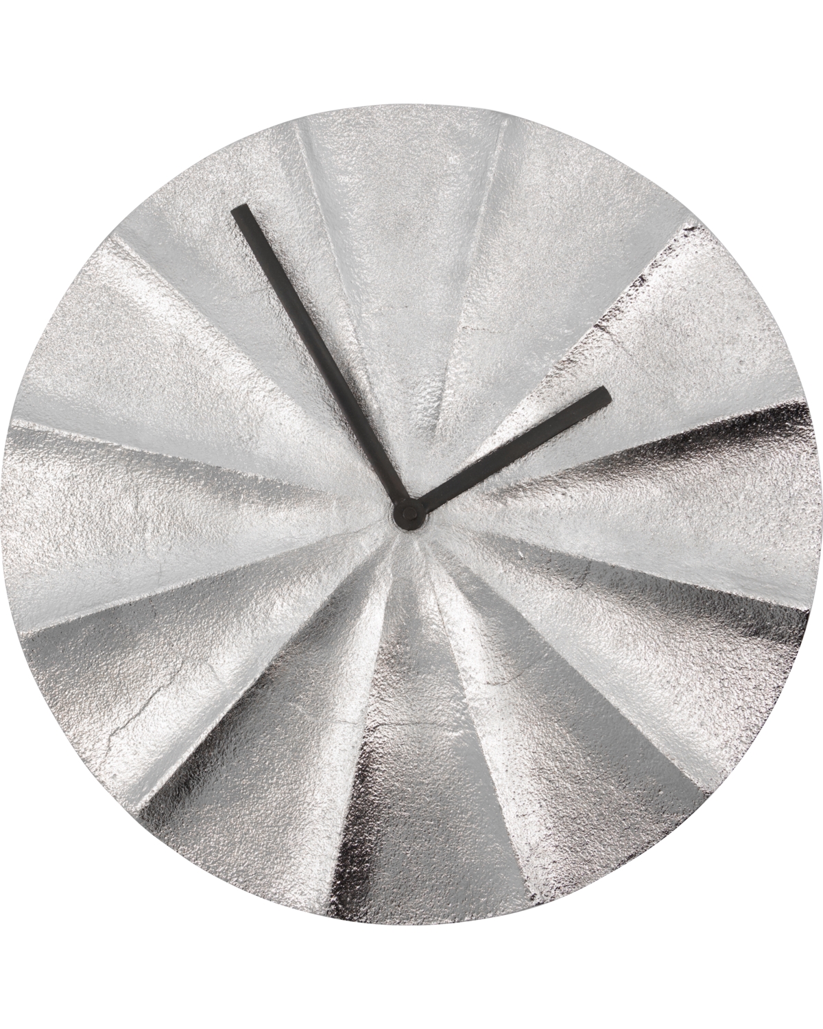 Dette håndlavede HDShow-ur er designet som et skulpturelt kunstværk til væggen. Den plisserede urskive skaber et levende udtryk, mens den blanke sølvfinish står i elegant kontrast til viserne i mørk gunmetal. Et moderne ur, der forener funktion og design.- Dynamisk sølvfinish.- Mørke visere i antik gunmetal.- Bruger AA-batterier – medfølger ikke.