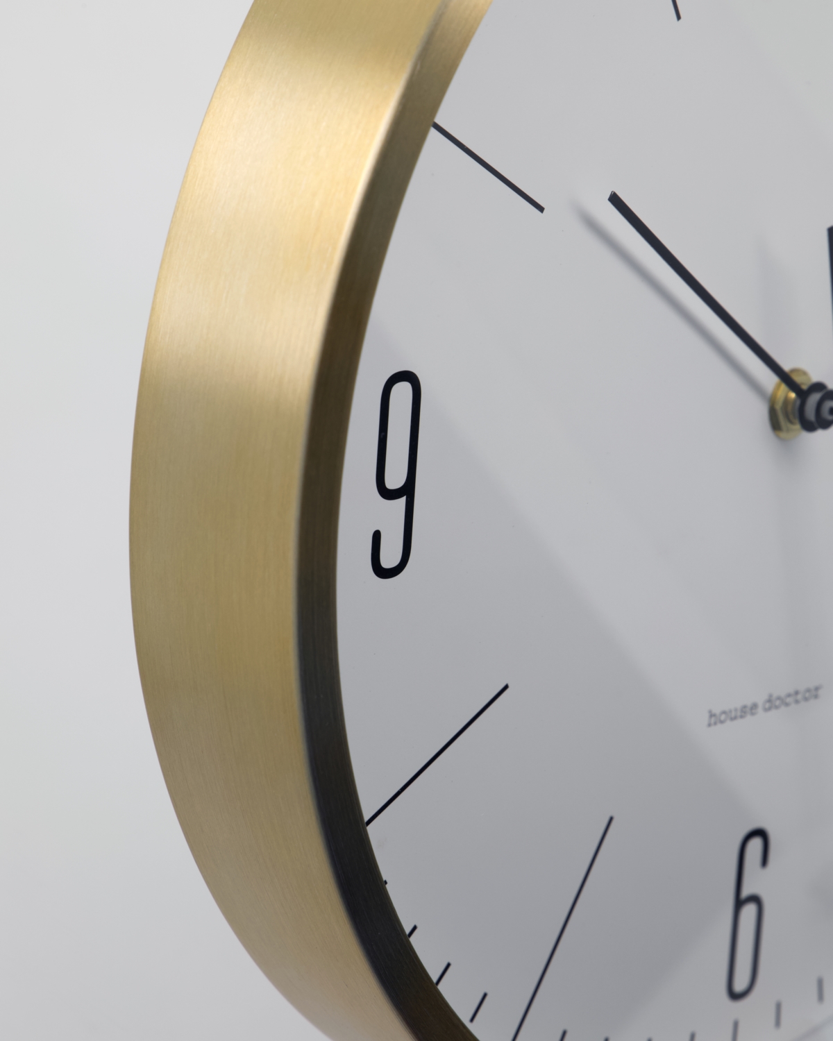 Tilføj et strejf af moderne elegance til dit hjem med dette udsøgte vægur. Det slanke design har en aluminiumsramme med en gylden finish, der problemfrit blander stil med funktionalitet. Sorte tal og visere skiller sig ud fra den hvide urskive og sikrer klarhed og nem aflæsning. Urets minimalistiske æstetik er perfekt til ethvert rum og giver en sofistikeret, men underspillet tilføjelse til din indretning.- Aluminiumsramme i gylden finish.- Smalt rammedesign.- Enkle sorte tal.- Perfekt til ethvert rum.Fuldend din indretning med dette stilfulde ur.
