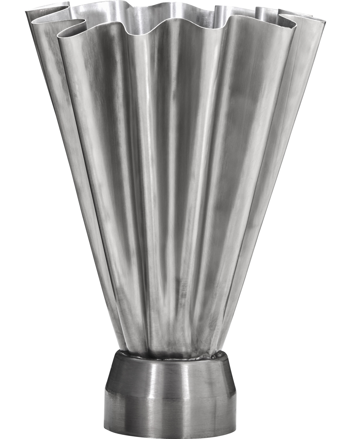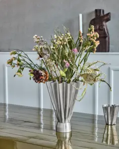 Med sin finish i børstet sølv skaber denne håndlavede vase et cool, moderne udtryk i din indretning. Den bølgende form fremhæver både blomster og interiør, uanset hvor den placeres i hjemmet.- Håndlavet i jern.- Finish i børstet sølv.- Skulptureret, bølget form.- Perfekt som midtpunkt.Lad vasen stå alene på spisebordet, eller kombiner den med tørrede grene for at skabe et kunstnerisk præg.